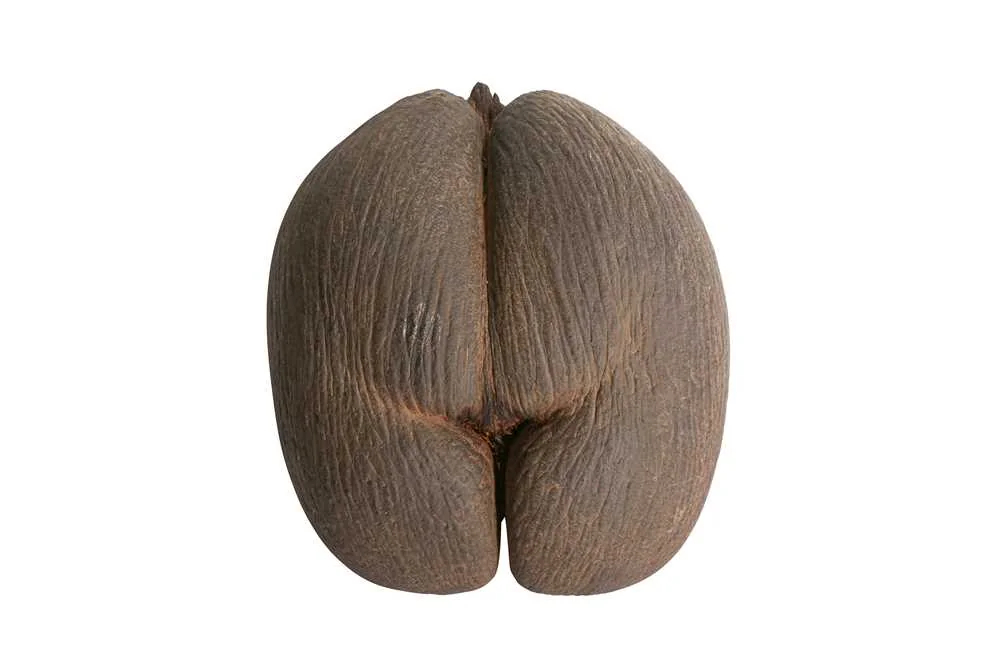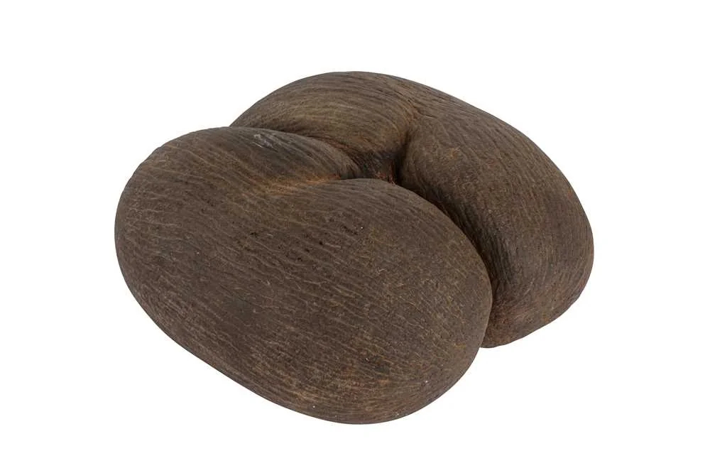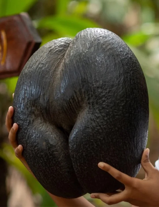 这叫海椰子(学名:Lodoicea maldivica),是植物界最大、最重的种子果实呈双瓣连体,酷似人体臀部,这也是 “双椰子”“爱情坚果” 称呼的来源。