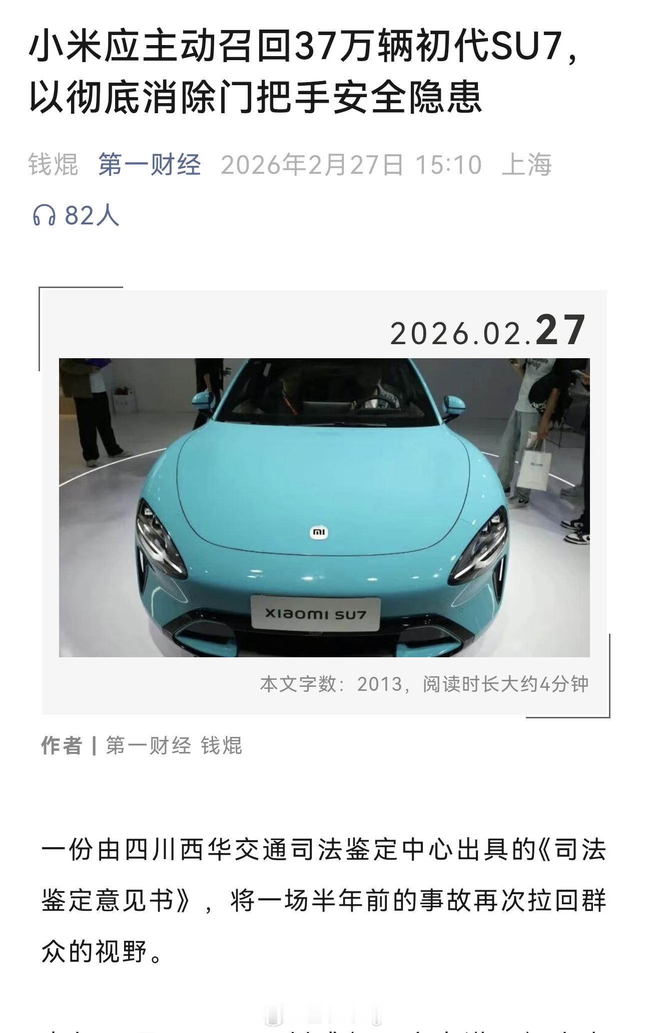 小米应主动召回37万辆初代SU7媒体界的第一猛男,但是经过jikewan的事件之后,测评这行也要完蛋了,谁还会说真话呢,说是扰乱市场环境,实际上阻止这种测评,只会让市场越来越差!