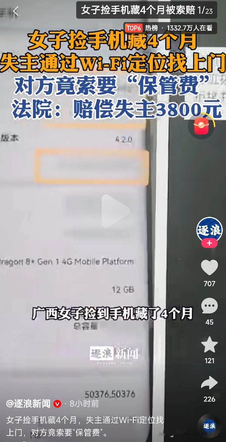 广西陆川女子李某捡到一部6000元手机,藏了整整4个月,结果被失主小陈通过Wi-Fi定位精准找到! 更离谱的是,李某竟理直气壮索要“保管费”,还偷偷把手机恢复出厂设置,导致资料全丢!法院最终判决:李某赔偿3800元! 网友怒赞:贪心必有代价! 丢失→定位→抓捕:2025年3月,小陈在体育馆丢手机后,立刻挂失并启动“丢失模式”,留言愿付2500元酬谢。4个月后,手机突然开机,小陈通过定位+Wi-Fi信号直奔李某家! 对峙现场:李某承认捡到,但声称“保管4个月要收费”,还提前刷机删光数据,导致照片、资料全灭。 法院“灵魂判决”:认定李某行为属“非法侵占”,且因重大过失导致数据丢失,需赔偿3800元(含手机损失+数据费)。 ✅ 误区1:“捡到就是我的?” 《民法典》规定:拾得遗失物必须返还,否则可能构成侵占罪! ✅ 误区2:“保管就能收费?” 若拾得者未主动联系失主或送警,反而藏匿或索要报酬,属违法!正确做法:立即联系失主或上交公安。 ✅ 误区3:“删数据不用赔?” 手机价值不仅在于硬件,数据丢失若因故意或重大过失,需赔偿!李某刷机行为就是“实锤”。 “捡了不还还想收钱?简直又蠢又坏!支持重罚!” 贪小便宜吃大亏,活该! 手机丢失立刻挂失+开启定位!保留购买凭证,数据丢失可索赔! 捡到者别贪心!立即归还或送警,否则可能面临罚款甚至刑事责任! 不是你的,别伸手!守法才是真聪明! (文章素材来自逐浪新闻,侵删)