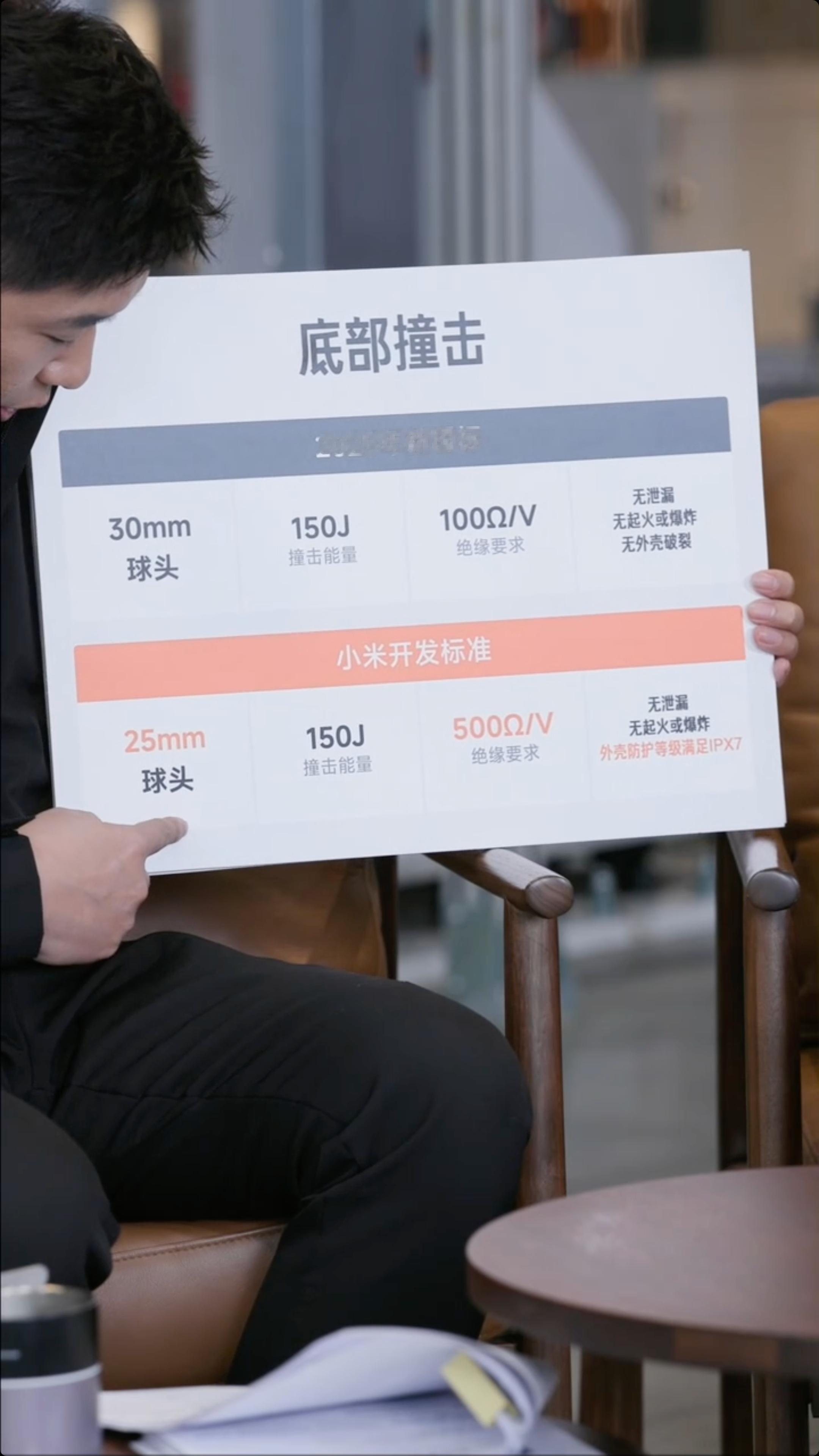 碰撞测试方面,新一代SU7相比上代还纳入了欧美三个最重要的碰撞标准,碰撞标准更高。而第一代小米SU7至今的开发标准都高于2025年新国标,包括电池包系统测试热扩散、底部撞击、连续多次快充循环短路测试等都更为严苛。
