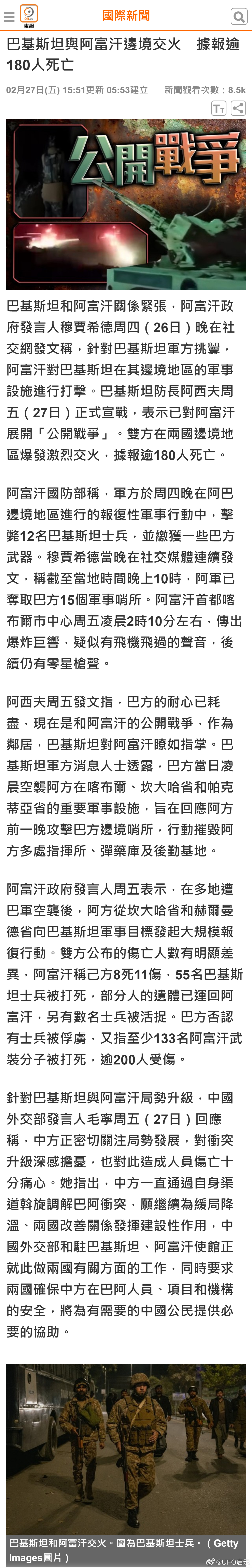 巴基斯坦防长宣布对阿富汗展开“公开战争”:我们的耐心已经耗尽,我们对你们了如指掌