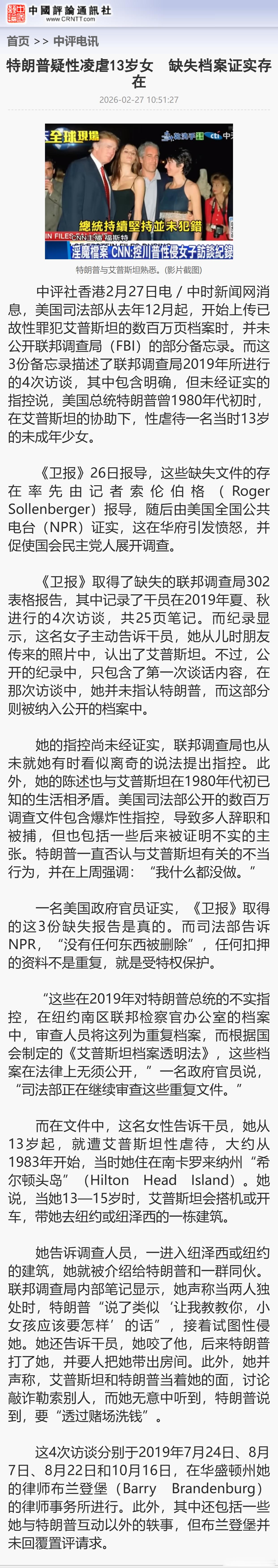 特朗普疑性凌虐13岁女 缺失档案证实存在
