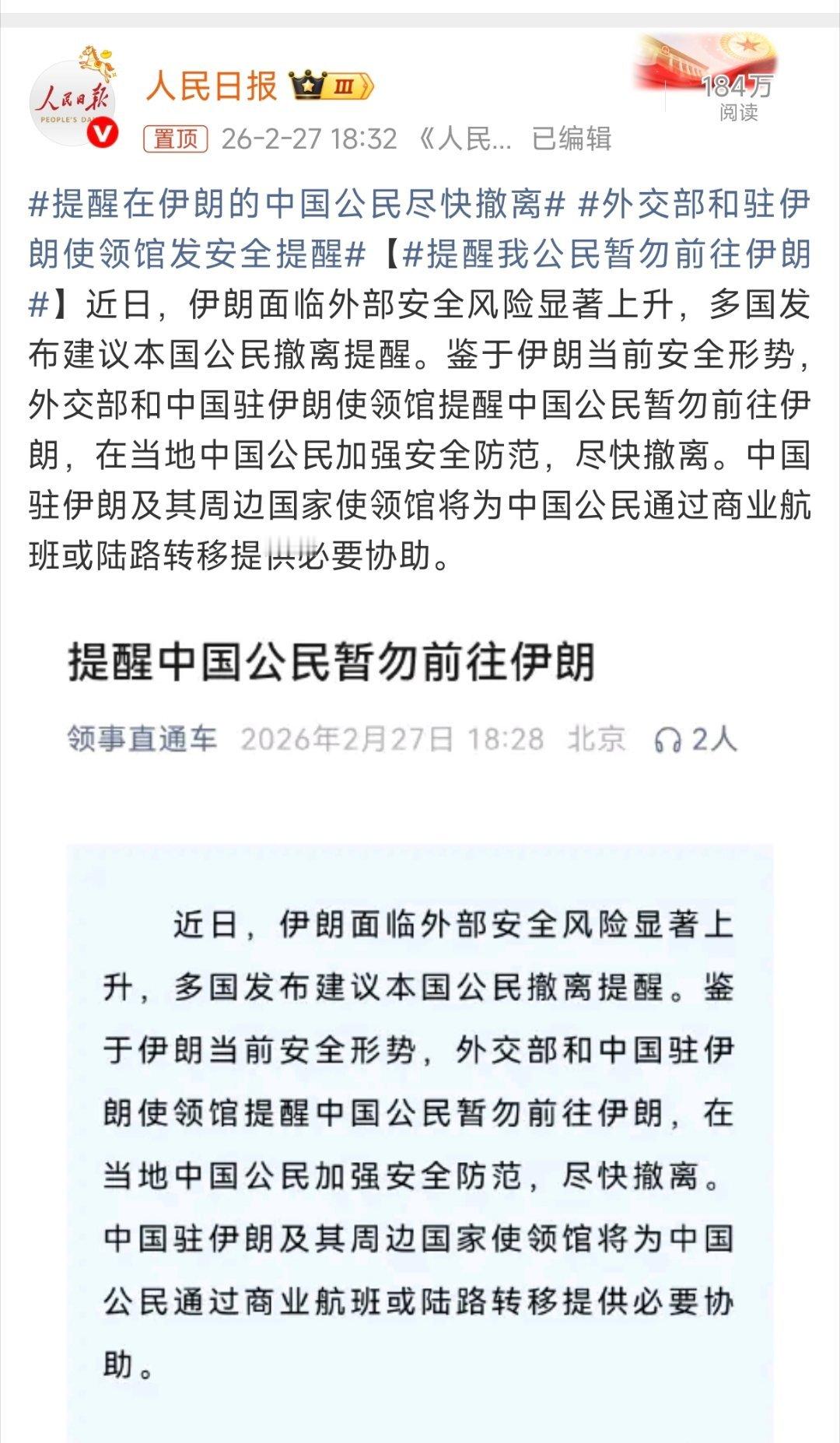 真要打了!提醒在伊朗的中国公民尽快撤离