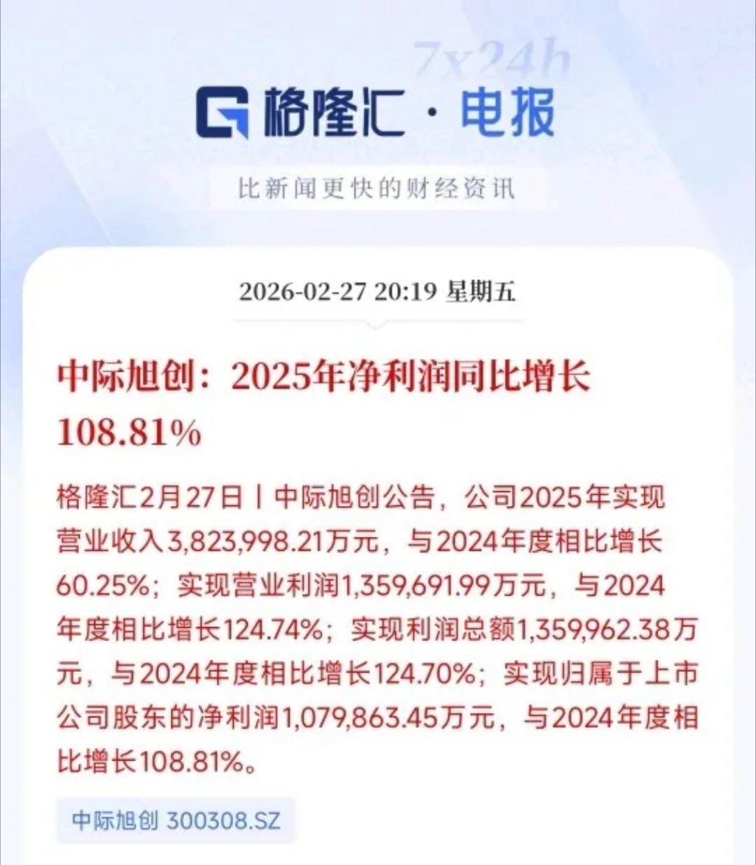 人工智能龙头公布2025年业绩,超预期但股价反而大跌今天2025年最牛个股中际旭创公布了业绩,实现净利润增长108.81%,净利润达到了107亿,机构预期是102亿,完全超出了预期,但是今天中际旭创的股价大跌6.68%,带崩了整个光模块板块,同时也影响了人工智能概念个股。