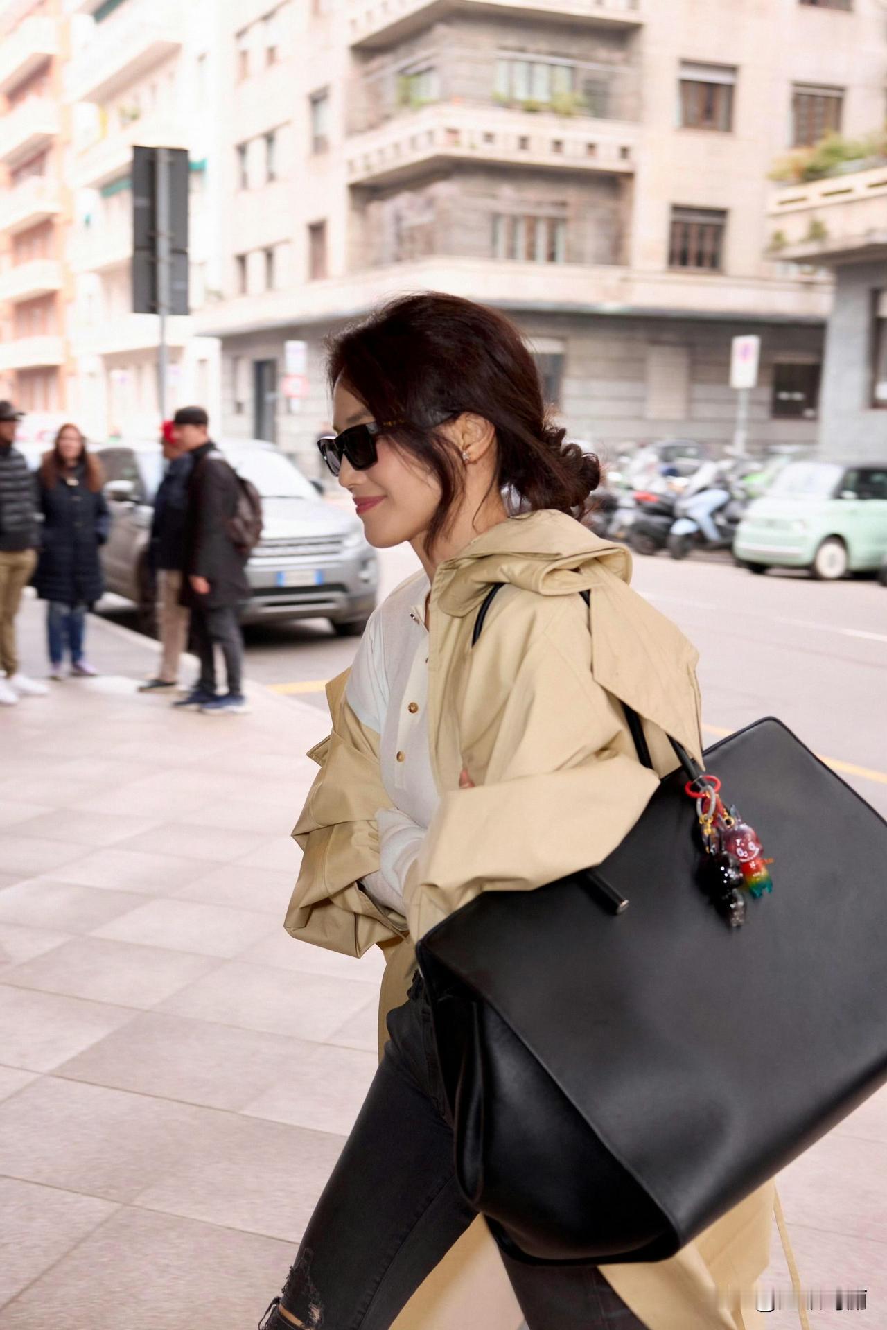 抵达米兰,即将出席BottegaVeneta大秀,松弛感十足✨Labubu不