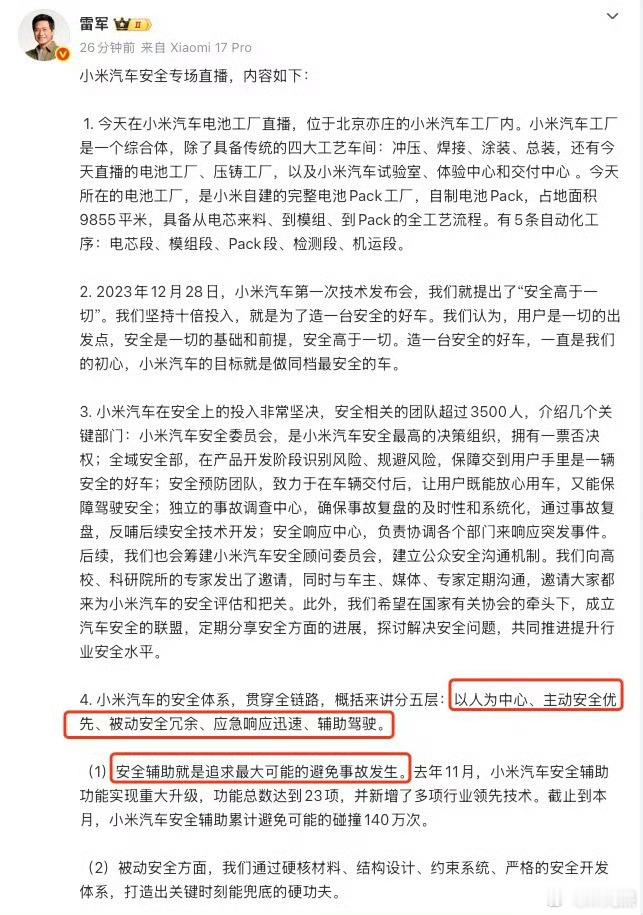雷军再强调辅助驾驶无法代替人类这点我双手赞同,现在的智驾确实越来越强,自动跟车、变道、上下匝道都很丝滑,但很多人越用越“飘”,直接躺平放手刷手机,这才是最危险的。要知道,路况永远比测试场复杂,突发加塞、临时修路、奇怪的障碍物,系统都可能反应不过来。辅助驾驶的定位,从来都是帮你减轻疲劳,不是替你开车。技术再牛,也扛不住人类的过度信任。车企反复强调“人是最终责任人”,不是保守,是保命。雷军再强调辅助驾驶无法代替人类