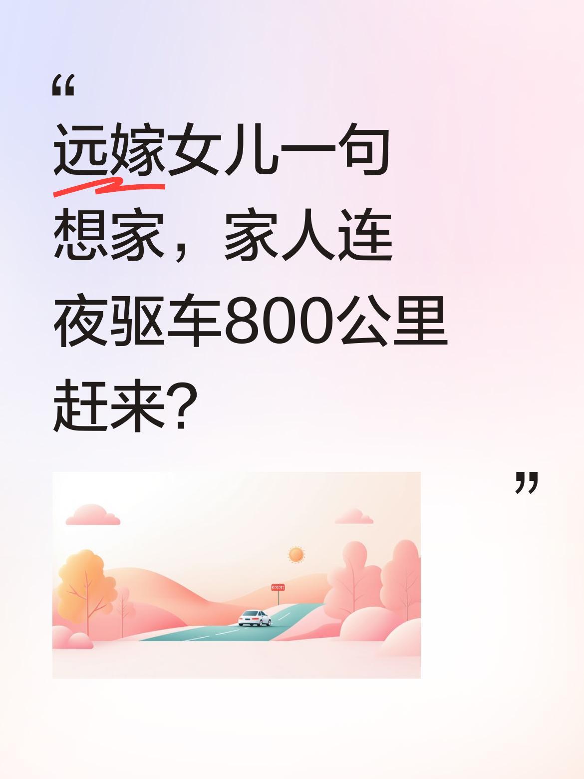 远嫁女儿一句想家,家人连夜驱车800公里赶来? 一位远嫁的女儿给父亲打电话说想家了,娘家人连夜开车800公里来看望她。当女儿看到家人出现在眼前的那一刻,瞬间泪奔。这份跨越千里的亲情,让人感受到家人永远是最坚实的后盾。远嫁的你,是否也有过这样温暖的瞬间?