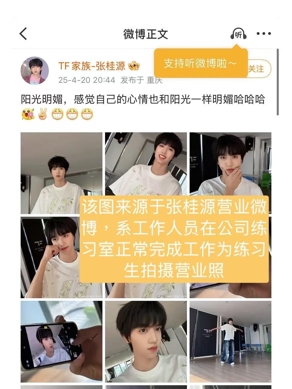 张桂源粉丝发文系工作人员 营业照是工作产物,拍摄者是工作人员,与不实传闻无关。