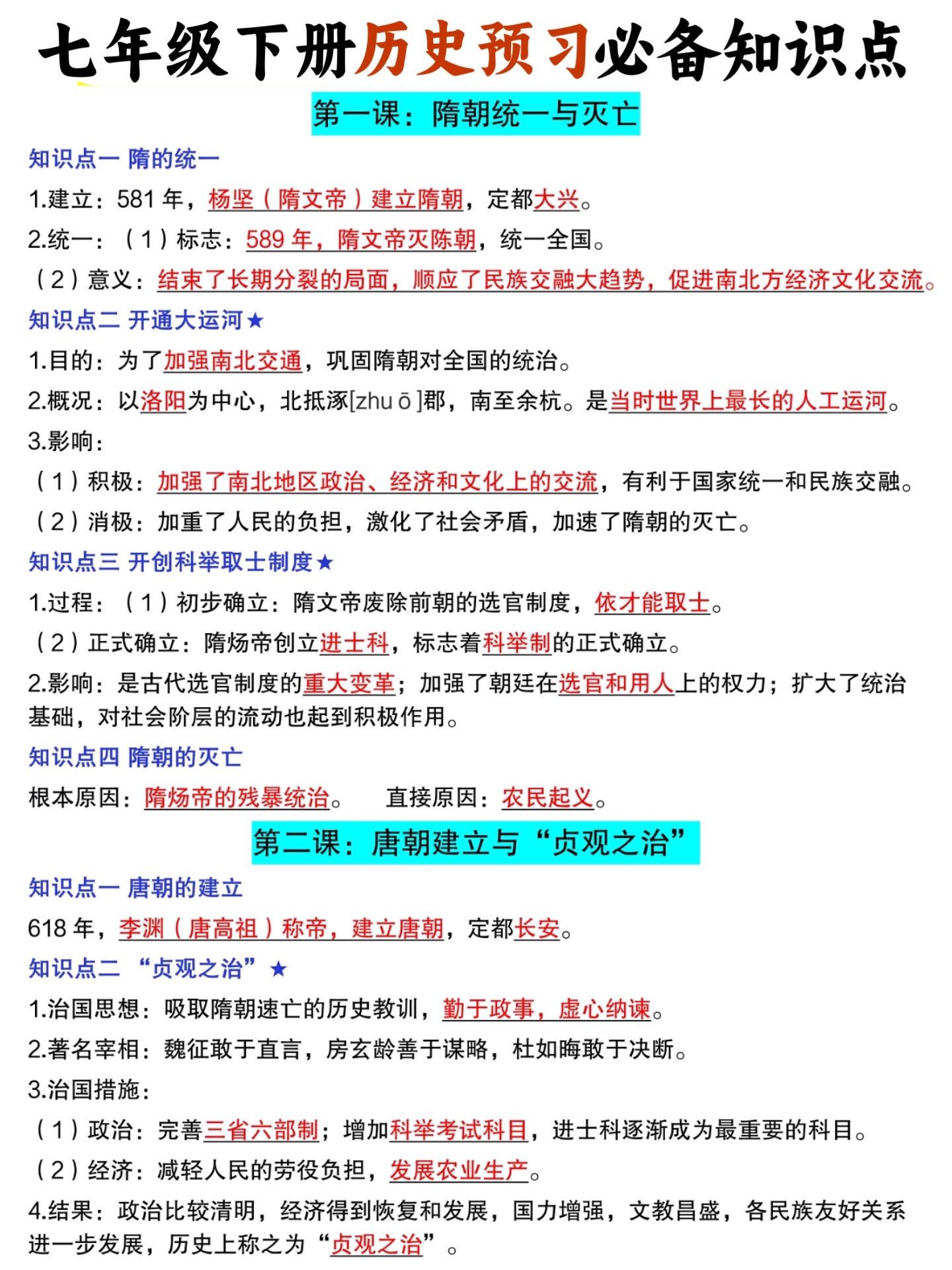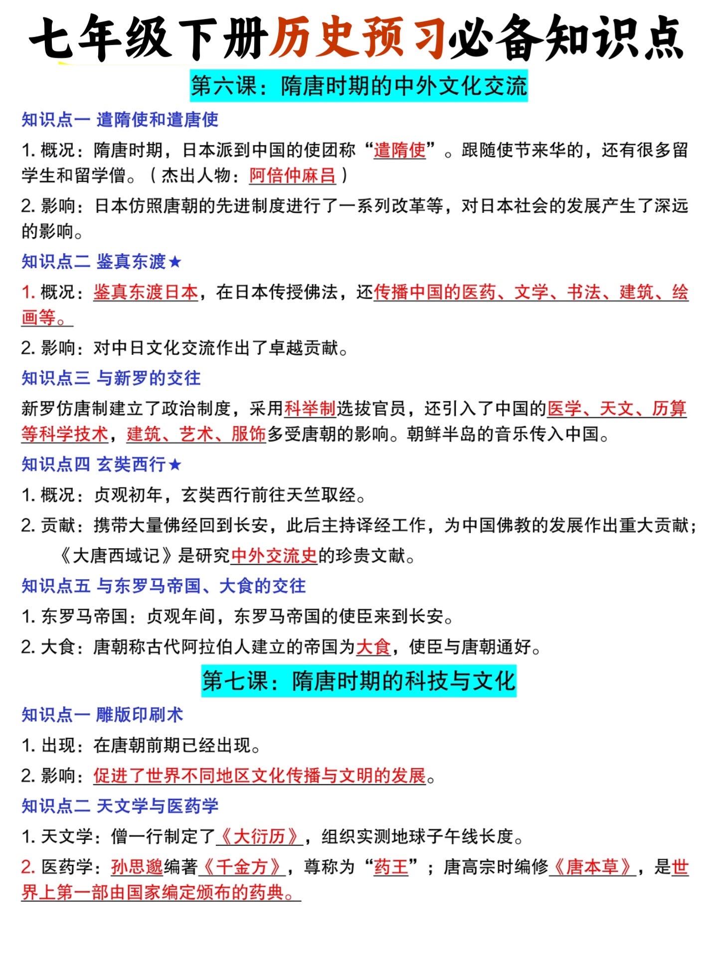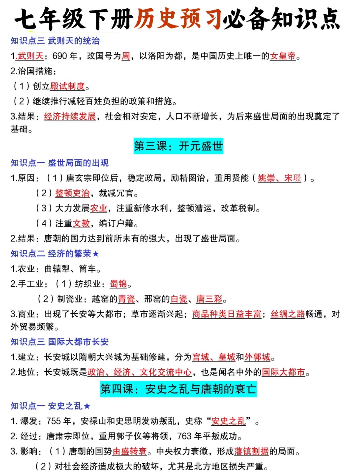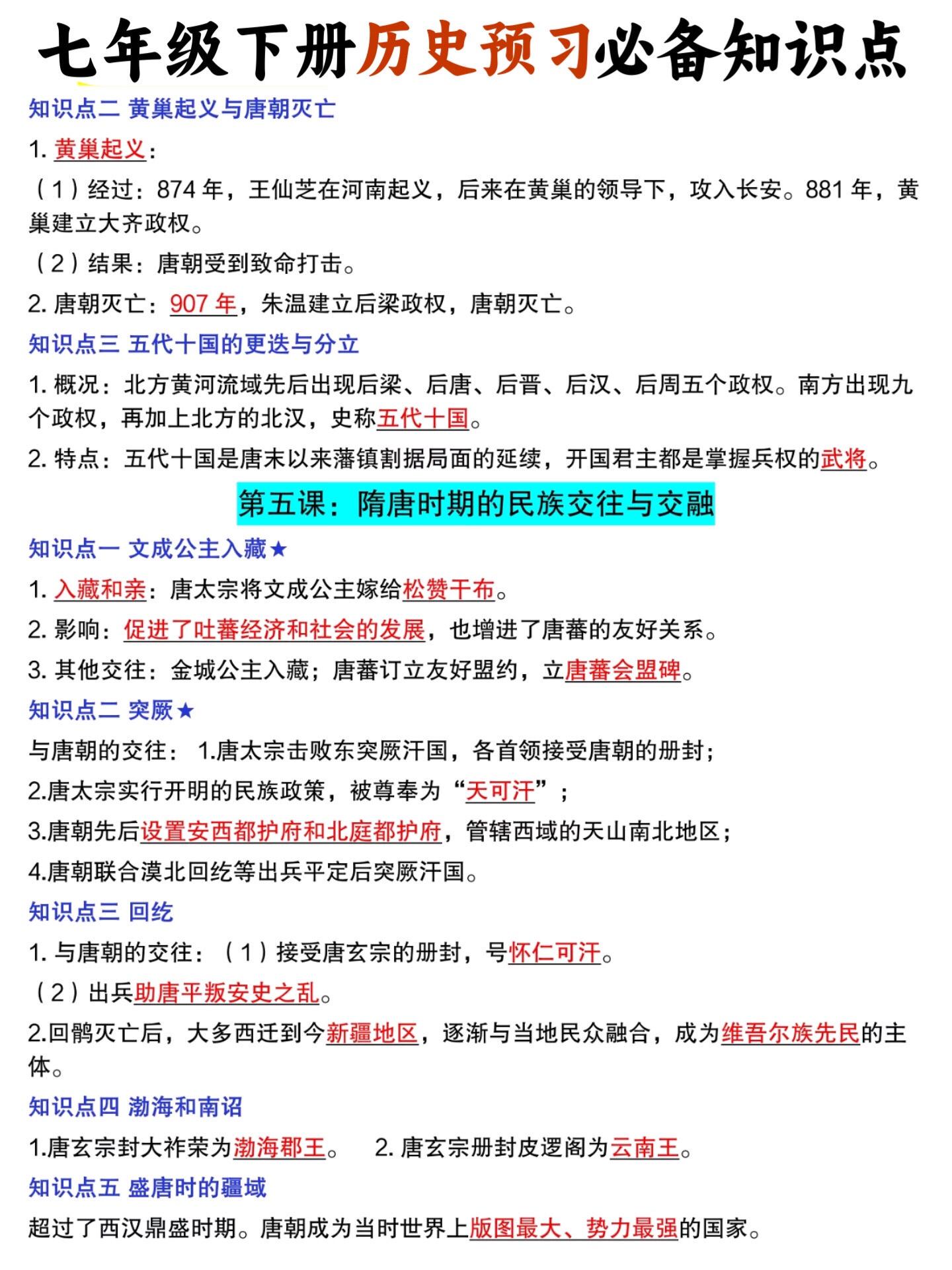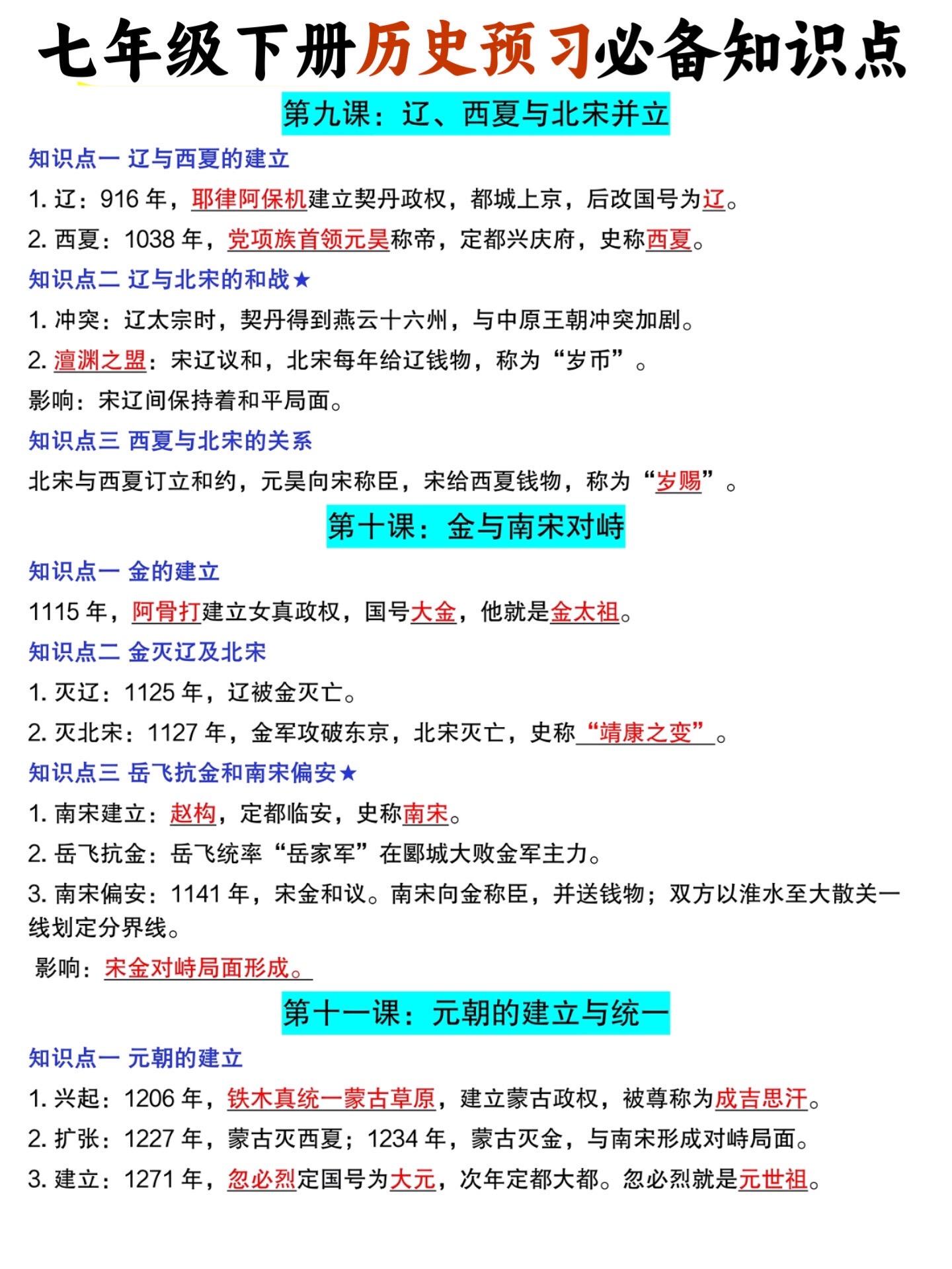 2026七年级下册历史必背知识点预习汇总。