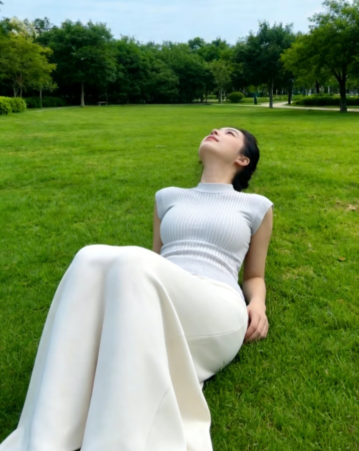 湖畔红韵,拥春日温柔🌸趁晴好天光,赴湖边春日之约。正红修身套装衬得气色透亮,