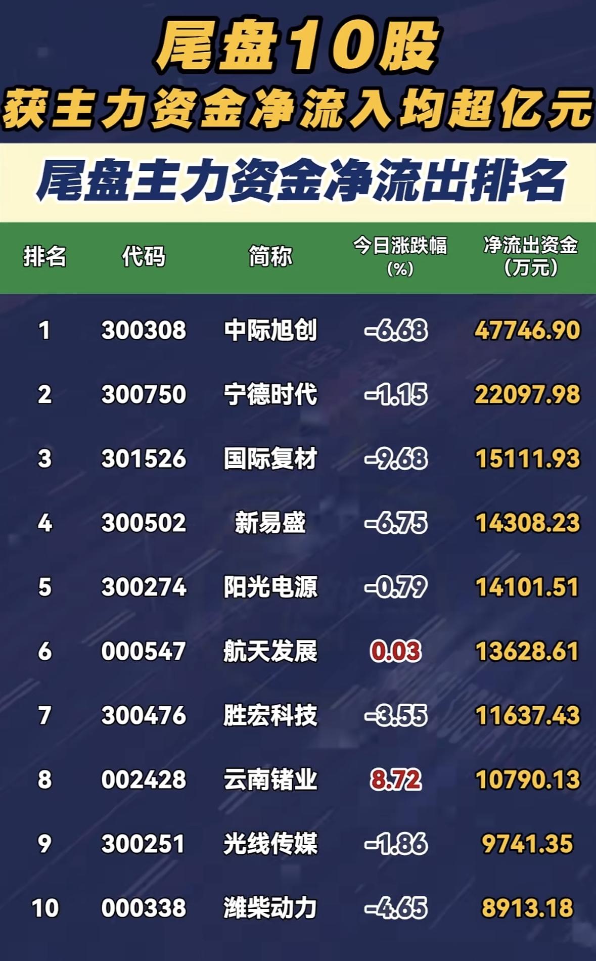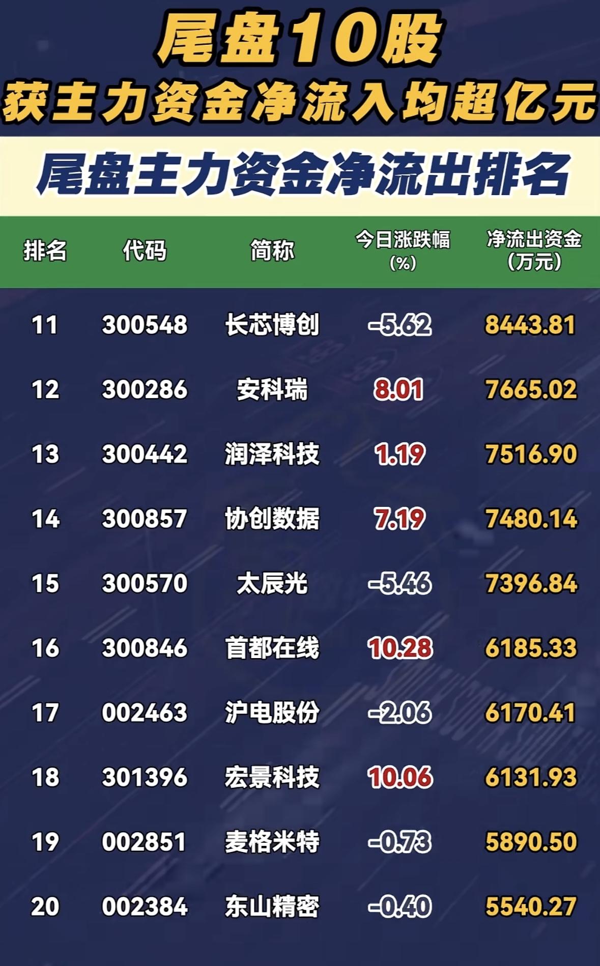 2月27日尾盘,主力资金大幅流出部分个股。像中际旭创净流出39.1亿,新易盛流出37.1亿,工业富联流出21.5亿等。当日A股三大指数涨跌不一,上证指数涨0.39%,深成指跌0.06%,创业板指跌1.04%,市场成交额25055亿元,较上日缩量512亿,超3200只个股上涨。 从行业看,电子、通信行业主力资金净流出均超110亿,计算机、有色金属行业净流入金额均超50亿。华为概念股获主力资金追捧,拓维信息、昆仑万维主力资金净流入均超13亿。想抓住大牛股,得密切关注资金流向和行业动态啊!