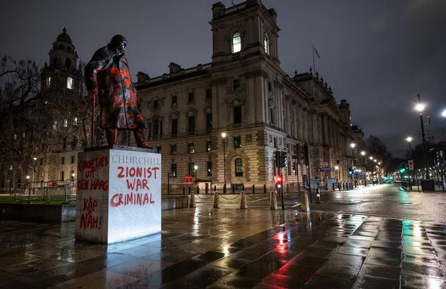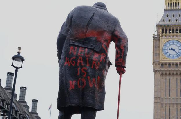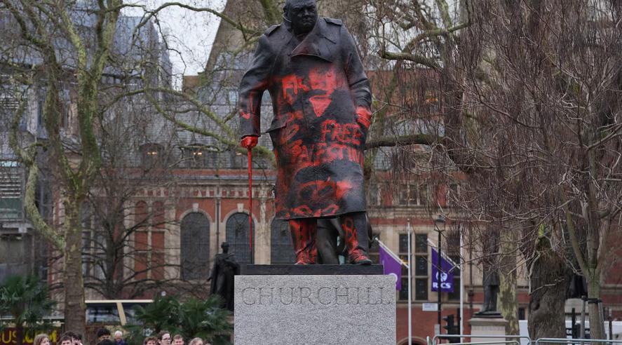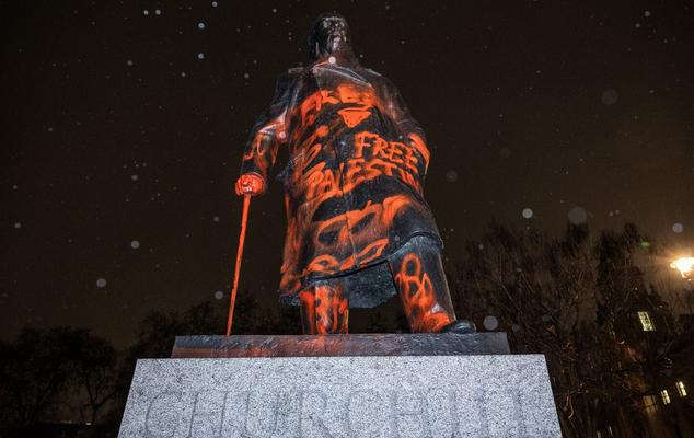 丘吉尔雕像被泼漆,英一男子被捕 一名38岁的男子因涉嫌种族加重刑事损害罪被捕,此前在伦敦市中心的温斯顿•丘吉尔雕像上喷涂了亲巴勒斯坦的涂鸦,涂鸦上的文字称这位战时领导人是“犹太复国主义战犯”,雕像还被喷上了“解放巴勒斯坦”和“停止种族灭绝”的字样。 伦敦警察厅10日表示,位于议会广场的二战时期英国首相的标志性纪念碑一夜之间“被涂上了红漆”。警方表示:“凌晨4点刚过,警察接到警报后两分钟内就赶到了现场。”