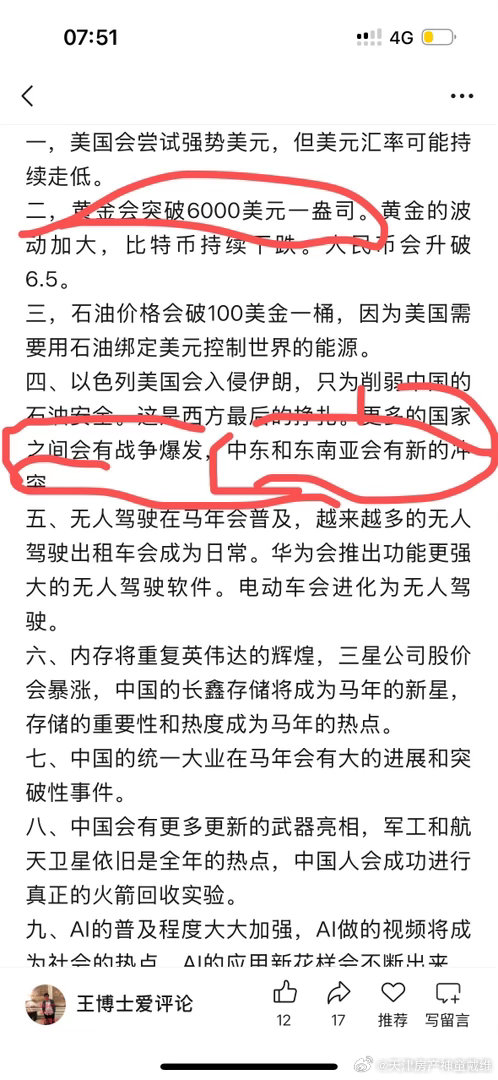 黄金在涨。巴基斯坦轰炸阿富汗。老王的新年预测有两个要准了