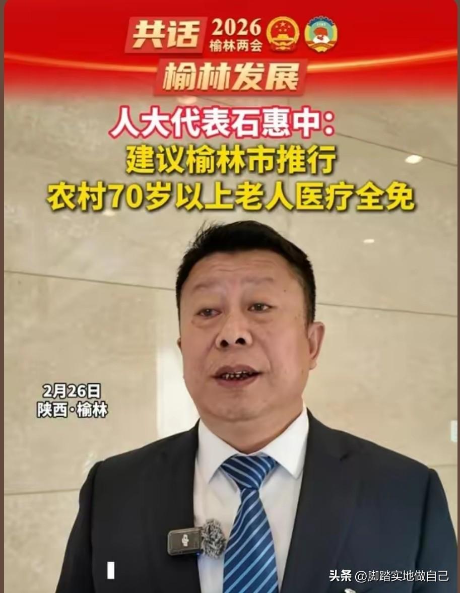 榆林重磅!农村70岁以上老人看病全免费?代表建议太提气🔥 榆林人速看!2026榆林两会炸出民生王炸建议! 市人大代表石惠中硬核提案: 👉农村70岁以上老人门诊、住院、药品、检查个人部分全免 👉费用财政统筹,不用老人掏一分钱! 不光免费用,还得少跑腿! 配套举措超实在: ✅精准算钱,市县财政预算专款专用 ✅村卫生室+日间照料中心升级 ✅乡镇村医疗设备换新、医护培训 家门口就能看病,高龄老人足不出村享优质医疗! 直击农村养老医疗痛点, 看病不花钱、少跑腿, 缩小城乡差距,助力共同富裕! 这样的民生建议必须支持! 赶紧转发,让更多老乡知道!