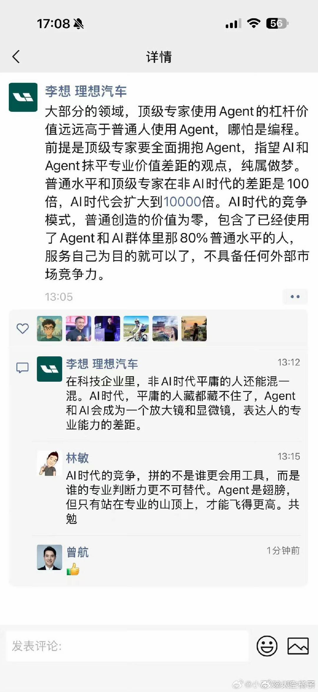 看完李想这条朋友圈,我沉思了很久😔