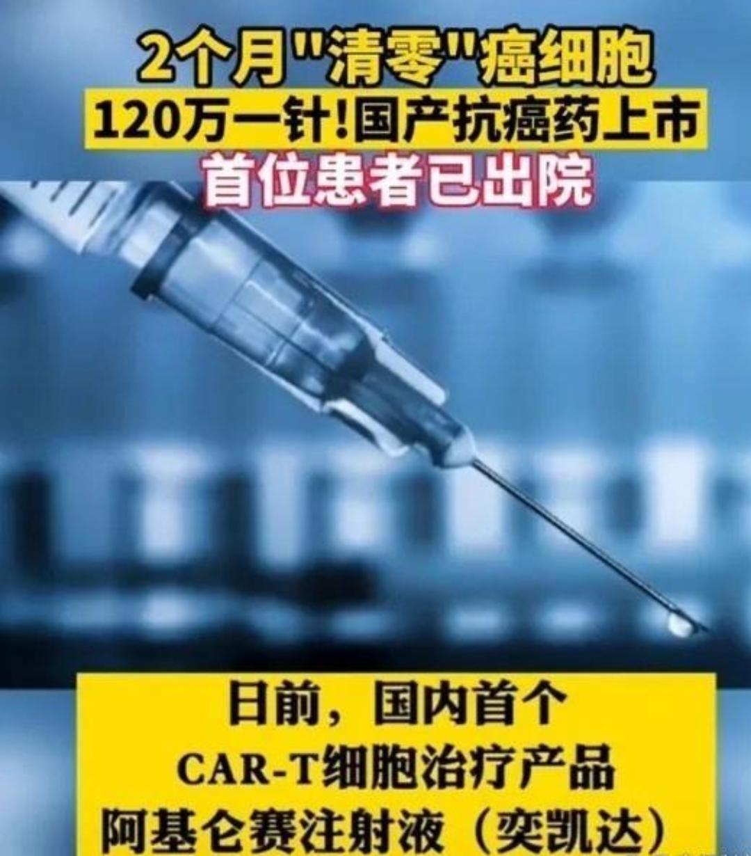 救命!120万打一针,癌细胞30天直接“跑路”,安徽这例抗癌案例,确实令人惊叹! 这不是夸张,而是真实发生的案例。这位患者确诊为弥漫大B细胞淋巴瘤,治疗过程十分艰难。 化疗、靶向治疗轮番尝试,病情却反复无常,面部肿胀明显,生活质量受到严重影响。 创造这一治疗奇迹的,正是120万一针的CAR—T疗法。很多人对它并不了解,其实它并非普通药物,而是“私人定制的活细胞药物”,无法批量生产。 简单来说,就是从患者身上抽取血液,分离出T细胞,在实验室对其进行基因修饰,为其加上“癌细胞导航”。 改造后的T细胞能精准识别并消灭癌细胞,经过扩增培养后回输患者体内,全程为一对一定制。 治疗前需要进行预处理化疗,为改造后细胞的回输和发挥作用创造条件。 2022年3月7日,医护人员顺利将制备好的细胞液为患者输注,全程未出现任何异常情况。 治疗效果十分显著,10天后患者面部肿胀逐渐消退,30天复查时,体内可见病灶已完全消失。 各项指标都恢复正常,达到临床完全缓解标准,观察没问题后就顺利出院,定期复查就行。 这个消息一出来,直接在网上炸开锅,成了大家茶余饭后的热议话题。 有人说“终于有治癌症的好办法了,科技太牛”,也有人吐槽“120万,普通人想都不敢想”。 病友群里更是炸翻,不少人打听治疗细节,可一听到价格就瞬间沉默,只能无奈放弃。 不过需要理性看待,CAR—T并非万能抗癌药,目前仅对部分血液肿瘤有效。 像肺癌、胃癌这些常见的实体瘤,现在还没法广泛用,而且治疗风险不低,不光可能发烧、低血压,严重时还会有神经毒性、感染等问题。 CAR—T价格高昂,并非药企刻意抬价,其单例制备成本较高,再加上高额研发投入,定价有其合理性。 但好消息是,情况正在慢慢变好!2025年国谈首次设立商保创新药目录,5款CAR—T全部纳入该目录、实现商保破冰,全国已有多款商业保险参照该目录执行保障。 安徽本地的皖惠保升级版(99元/年)已将CAR—T纳入特药保障,非既往症患者可100%赔付,既往症患者赔付30%,再加上国产技术突破,价格已经有了下降的空间。 而且咱们国内也有自主研发的CAR—T成功应用,比如安徽医科大二附院就有相关案例。 业内专家有两类主流预测:若通用型CAR—T研发成功并实现批量生产,价格有望降至30—40万区间;若结合自动化生产、体内CAR—T等前沿技术,价格甚至有望降至20万以内,能大幅减轻患者经济负担。 从2022年安徽这例成功案例,到现在商保覆盖、国产技术升级,也就短短几年时间,变化特别大。 医学进步的速度确实快,但天价药想走进普通家庭,还得靠多方面一起努力。 一边是能救命的医学黑科技,一边是普通人难以承受的高昂价格,这不仅是医学技术问题,更是关乎民生的大事。 相信以后技术越来越成熟,支付体系越来越完善,更多患者都能用上这种“救命针”。 信源:中安在线《血液肿瘤细胞免疫治疗有新招 安徽首创CAR—T细胞疗法获重要突破》 中国青年网《120万一针,癌细胞清零?癌症患者的“救命稻草”为何遥不可及?》