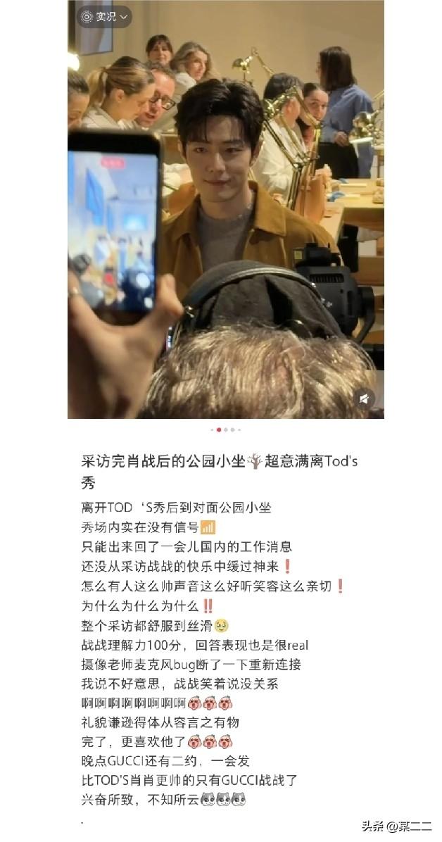 来看ELLE新媒体时尚总监采访完肖战的评价!!!真不愧是媒体眼中的满分男,看看关建词,亲切、舒服、理解力满分、礼貌、谦逊、言之有物。 哈哈哈,总监还说有Gucci战战更帅,太期待了,字里行间能感受到总监的兴奋,期待正式采访。