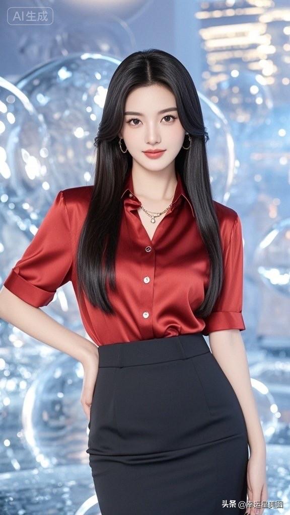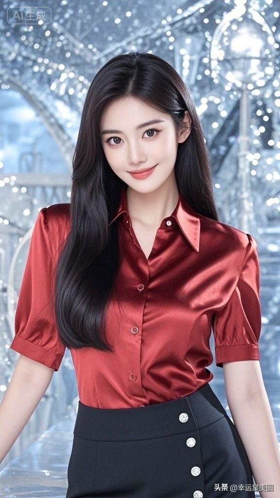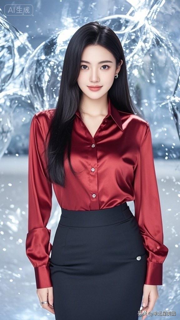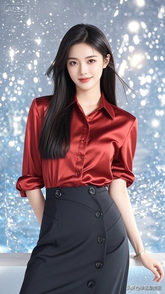 优雅红丝绒衬衫搭配黑色高腰裙,气质满分!💃🏻✨