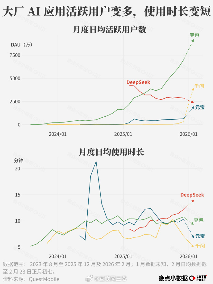 昨晚刷到“晚点”做了几张过年期间AI表现的图: