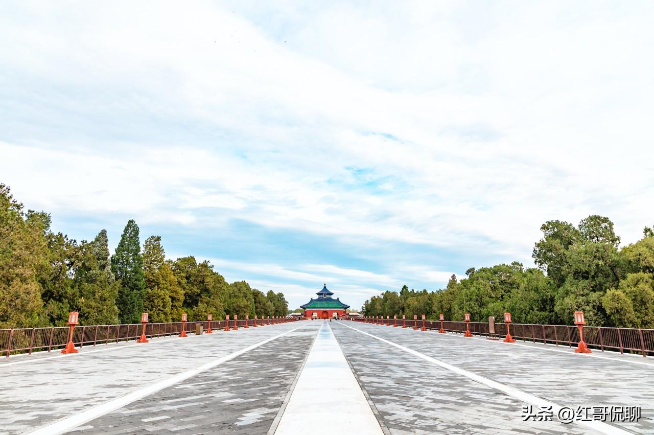 丹陛大道(又称丹陛桥、海墁大道)是北京天坛内坛的核心中轴线通道,连接圜(huán或yuán) 丘坛(皇穹宇)与祈谷坛(祈年殿) 。 1. 规格与沿革:始建于明永乐十八年(1420),全长360米、宽约30米;路基下有东西向券洞(牲畜通道),被称作“古老立交桥”;北高南低,南端约1米、北端约4米,步步登高象征近天。 2. 等级分明的三路:中间神道(天帝专用),东侧御道(皇帝专用),西侧王道(王公大臣通行)。 3. 名称由来:“丹”指红色,“陛”为宫殿台阶,古代丹陛多饰红,此道为祭祀核心通路,故有其名;因下方有涵洞,也称“桥”。