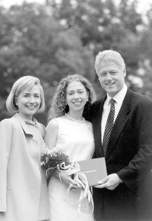 克林顿的老婆是女强人,从政多是男人,她一个女人在政界混得好。当年她坐中间,旁边的