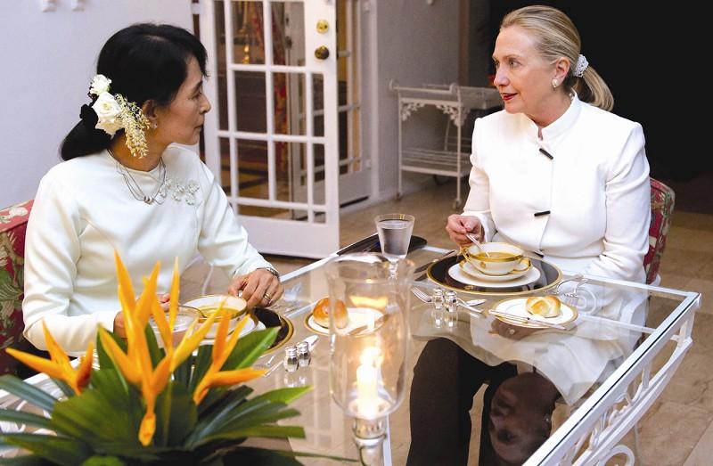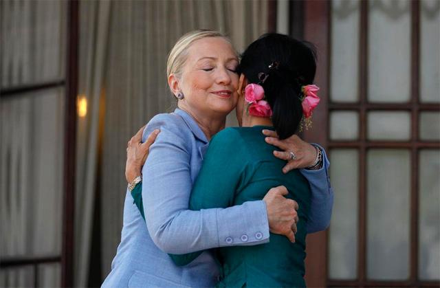 昂山素季爱戴花,活到老,戴到老。那年她和希拉里会面,年老色衰的她头戴鲜花,花儿很娇美。