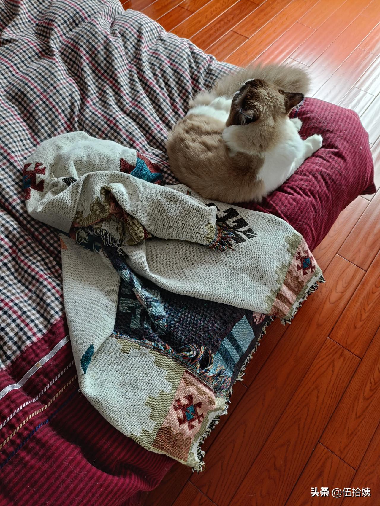 我家布偶猫,以前只是半夜等我睡着了,才会把床尾它的铺巾卷起来,自己偷偷摸摸的睡在被子上。[笑哭] 现在厉害了,早上铺好的方方正正的大铺巾,大白天的,堂而皇之的给卷起来,自己睡在被子上。 我就搞不懂了,这对它躺躺躺有什么区别? 可对我来说区别大了,被套上全是猫毛,得收拾好半天[黑线][发怒][发怒] 咋办?