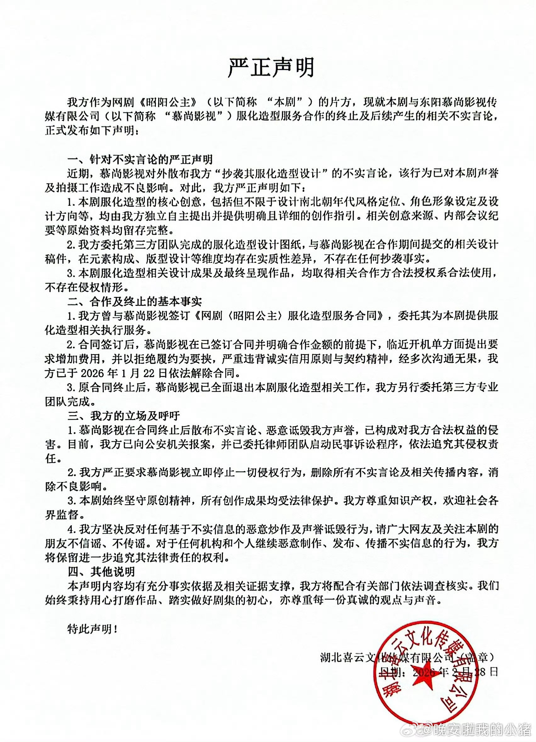 昭阳公主剧组否认抄袭,支持维权