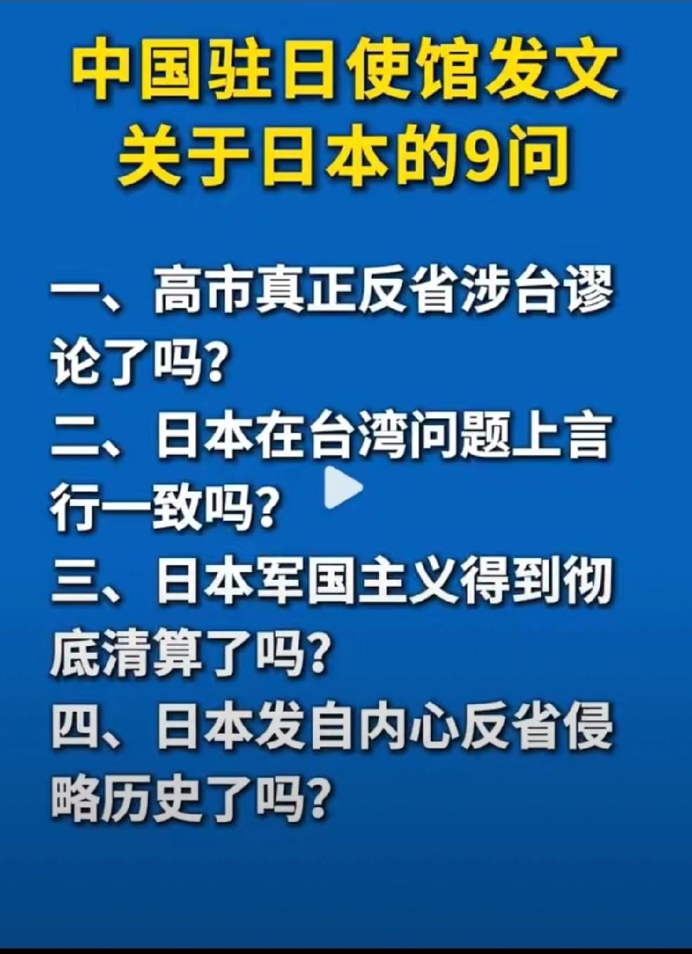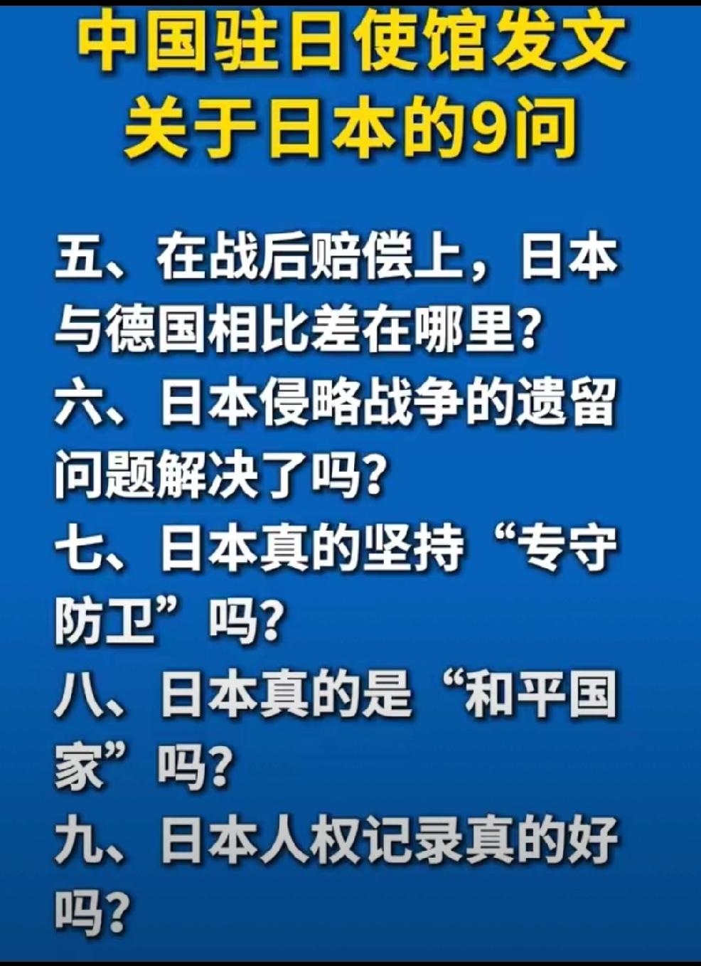2月28日,人民网直接用《关于日本的九问》,说明了日本当下行为的本质是: 日本再军事化,再武装化,拥有核武,重走军国主义的死亡路。 个人认为:日本正在主动积极的备战,发动21世纪的侵华战争。 一个时代,有一个时代的上甘岭,当下的时代就是要自卫反击,21世纪日本的侵华战争。