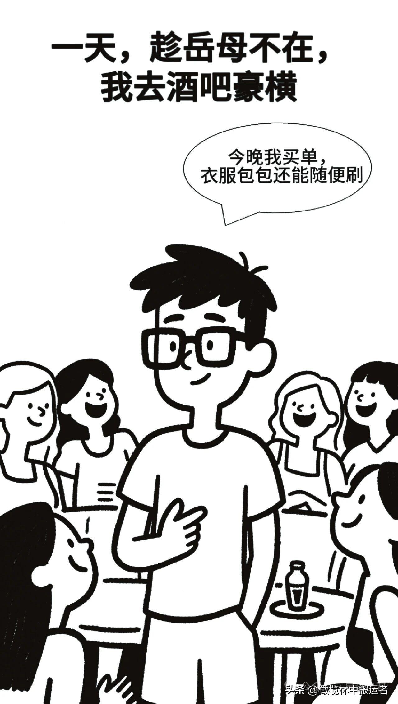 趣味漫画:婚后岳母给我200万零花钱,一天趁岳母不在,我去酒吧豪横:今晚我买单,正得意大笑时,老婆一巴掌拍来:别做白日梦,扫地去
