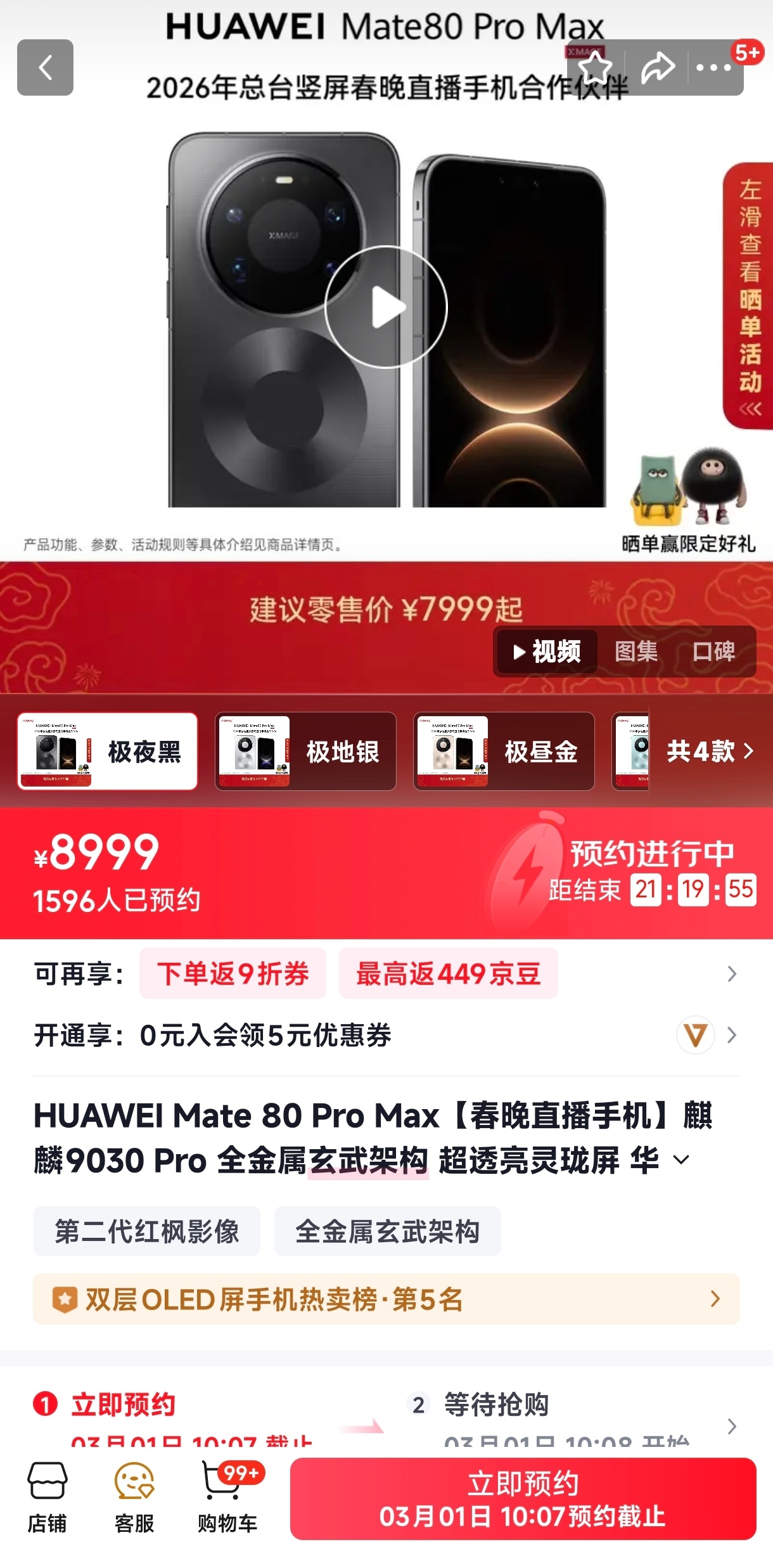 【华为Mate80Pro旗舰手机海外版预装EMUI15.0系统】华