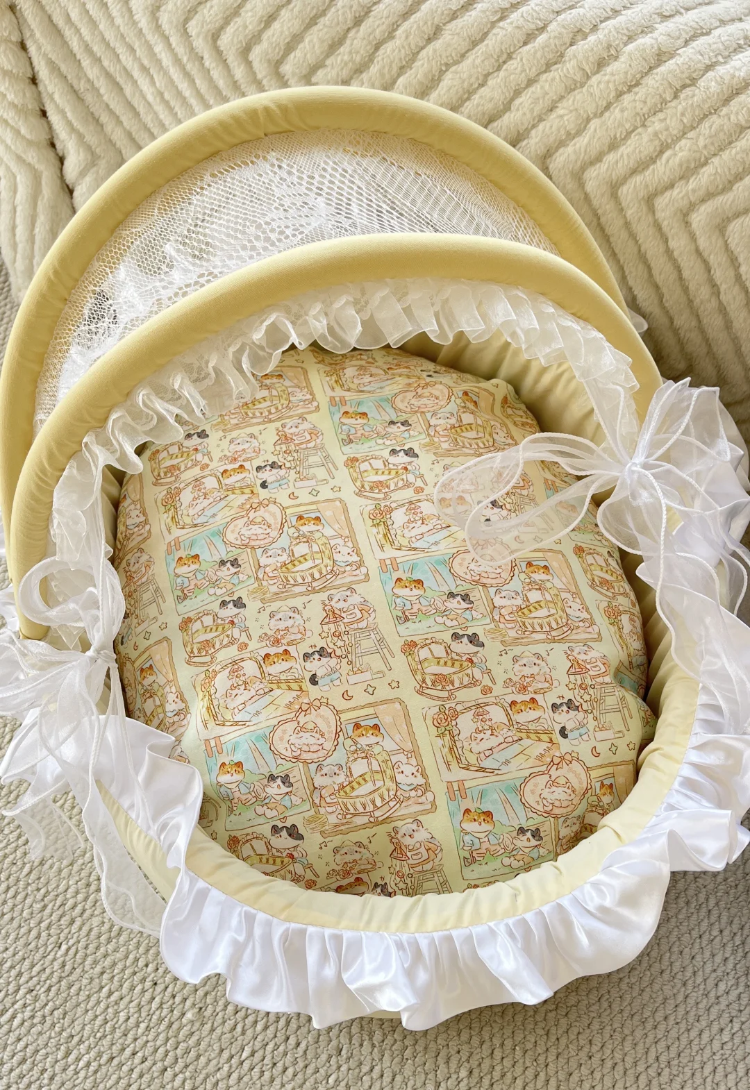 太可爱了这个布超级适配这个猫窝,用摇篮布料做摇篮猫窝