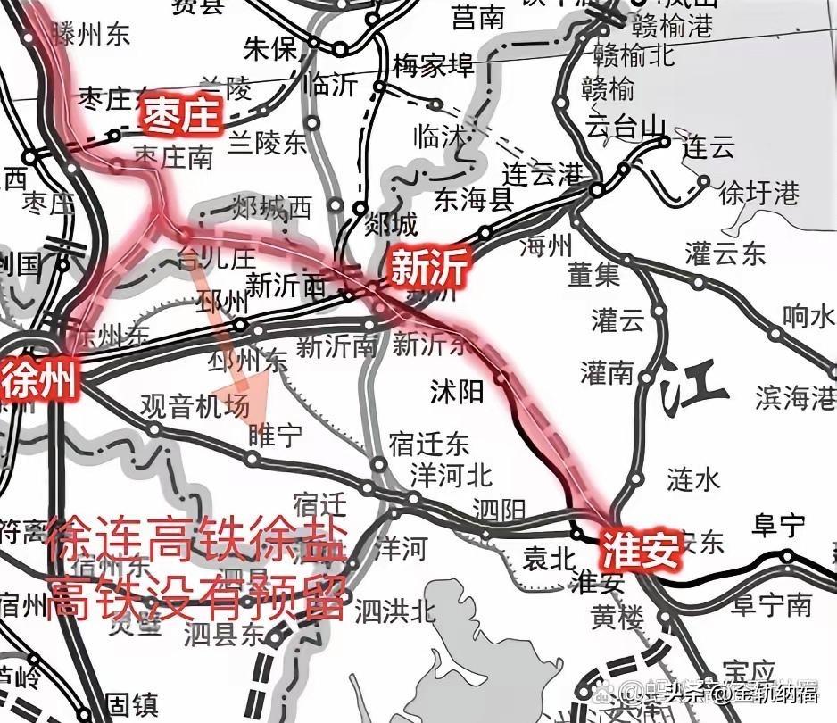 邳州东站地处邳州城市东部,邳州城区在京杭大运河西部,所以接入徐连高铁大概率在运河西面,台儿庄站引出90度弯道往南,接入徐连高铁90度接入,也没啥大问题。 问题是徐连高铁没有任何预留,接入需要封锁徐连高铁正线N久,花大代价砸掉正线施工这个才是非常要命的,徐州市对济枣高铁南延新沂尚且不冷不热,徐枣城际十五五也暂时搁置,对南延邳州估计也不容乐观。有人要问了,可以设置邳州西站,继续往南,遗憾的是往南的徐盐客专由于建设时序问题也没有任何预留站或者线路所,代价同样很大。