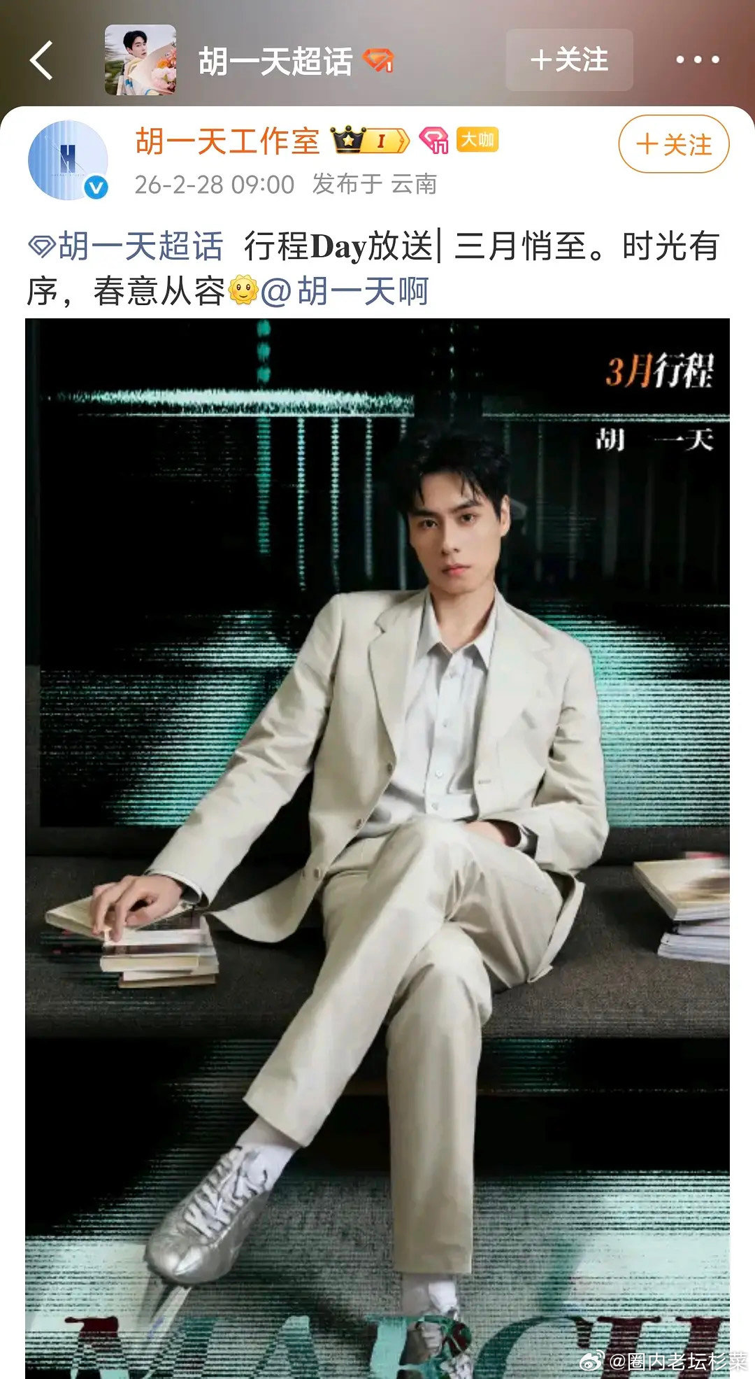 胡一天工作室发的三月行程图,他现在为什么0个工作