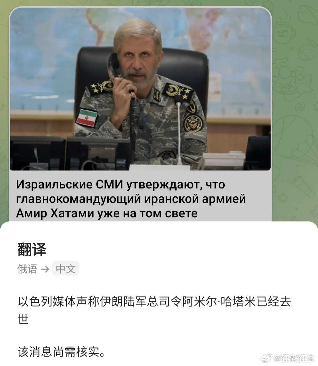 以色列宣布袭击伊朗 以色列媒体抢先报道:伊朗陆军总司令已被斩首