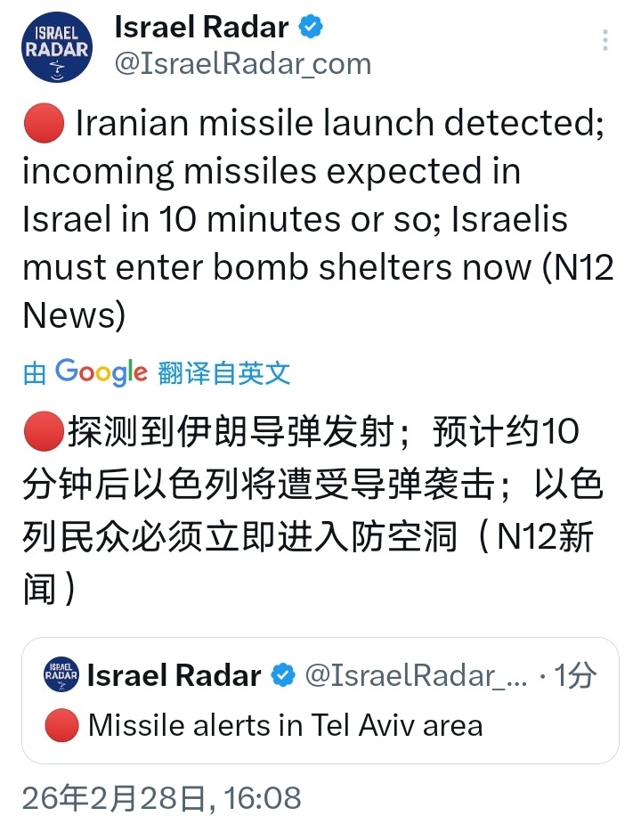 伊以冲突升级以色列宣布袭击伊朗伊朗的导弹回击来了