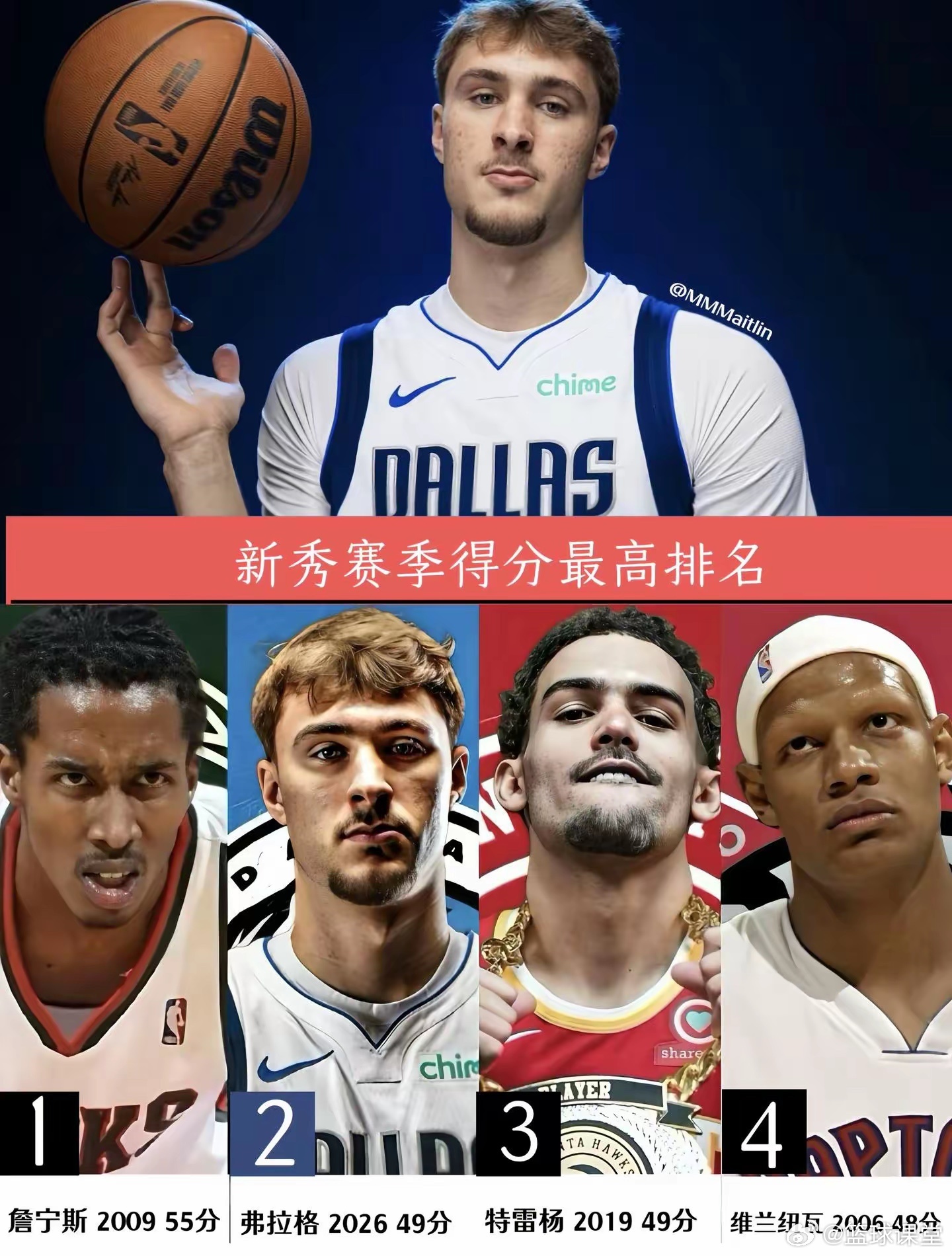 新秀赛季得分最高前四球员,山西名宿位列第一