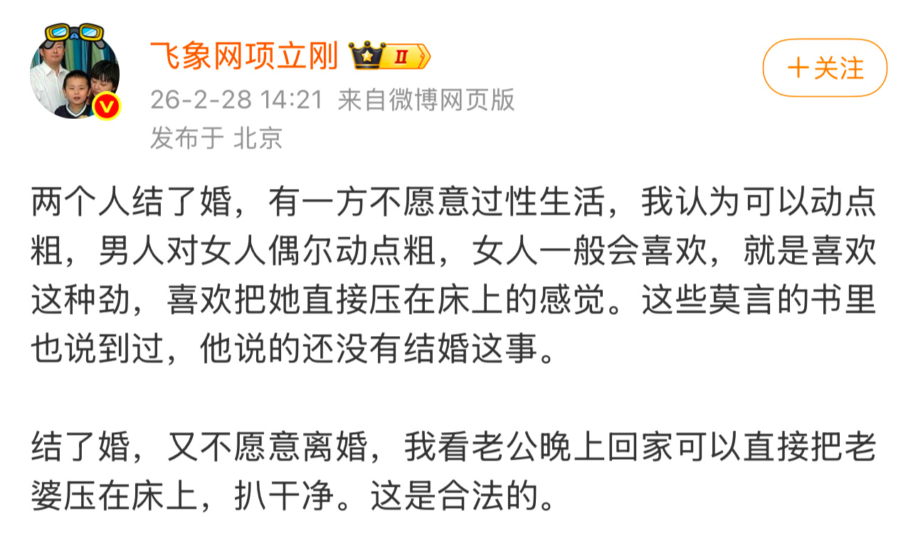 项立刚这番言论,足以在现在的社交平台掀起轩然大波