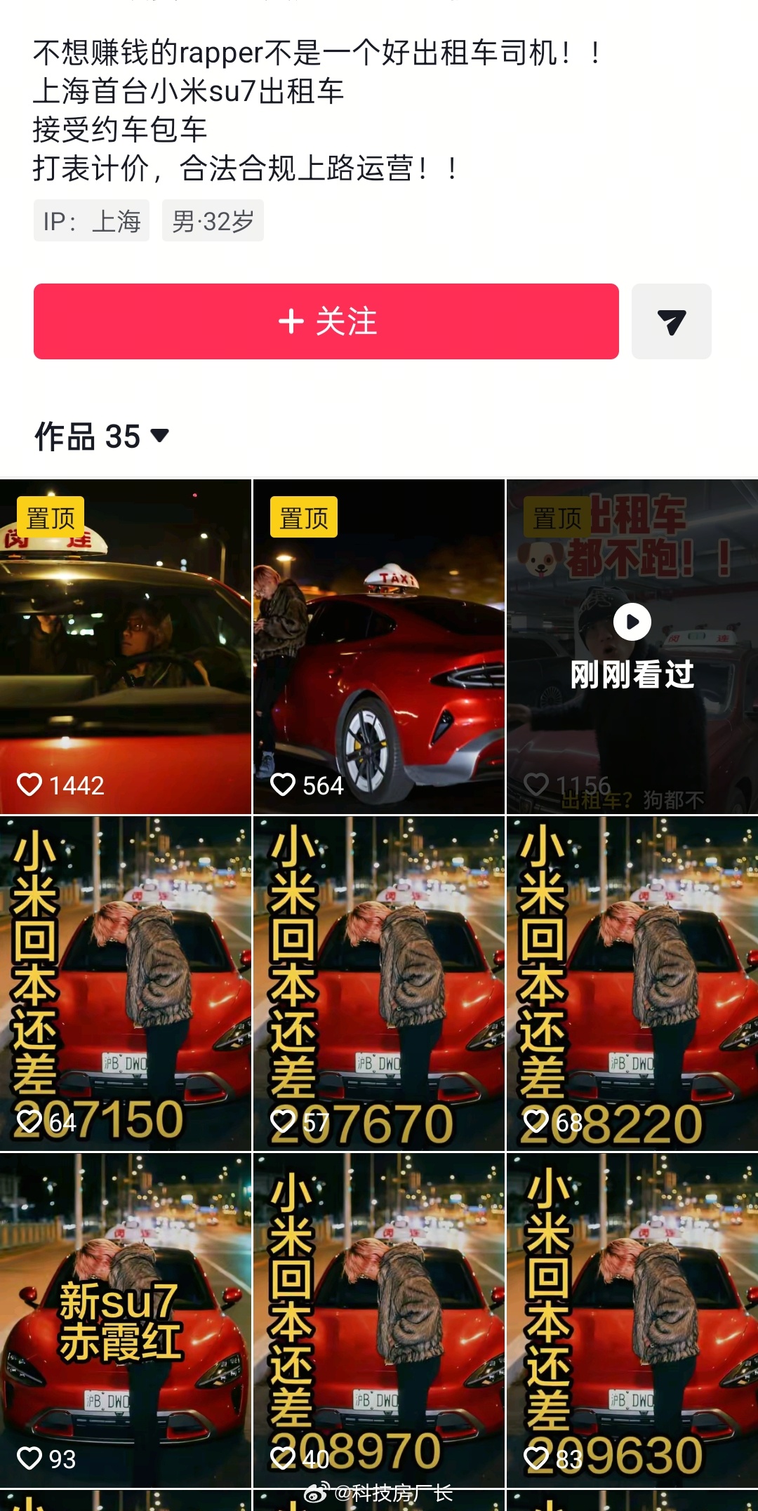 上海目前唯一的一台小米SU7出租车,起步价16,我看他开了一个多月了,目前赚了有一万六