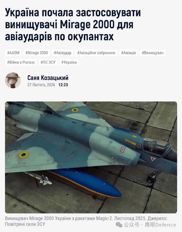 烽火问鼎计划 最新的网络视频拍到了乌军幻影2000F战斗机向俄军目标投掷ASSM“铁锤”制导炸弹的画面,虽然乌克兰空军的幻影2000战斗机早就已经开始在前线参与对地攻击,但被拍到还是第一次。