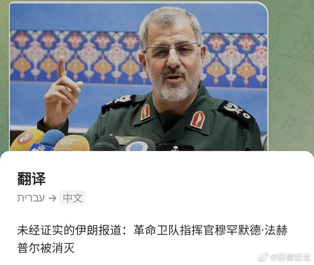 以色列宣布袭击伊朗 以色列媒体抢先报道:伊朗革命卫队指挥官被斩首