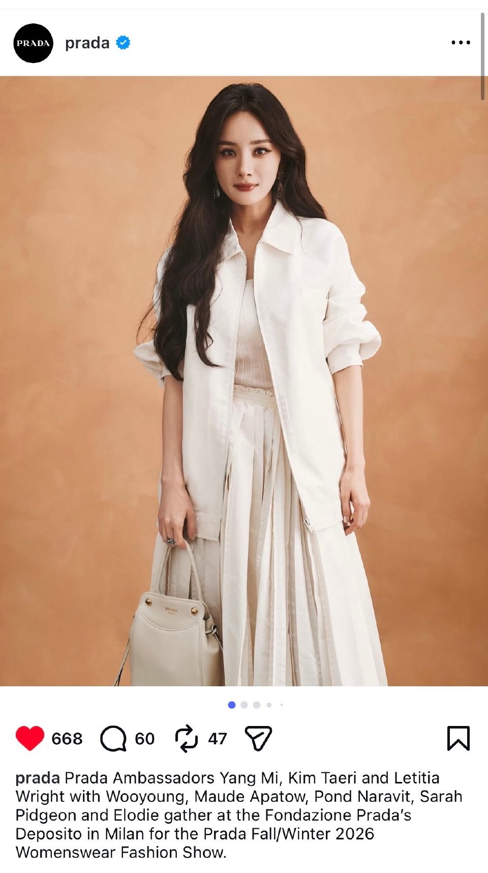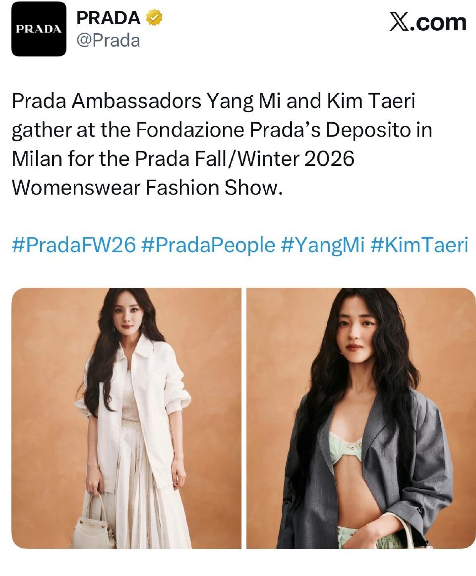 prada官博认领杨幂 prada官微认领杨幂!外网各平台杨幂都是首张封面、首位提及!待遇无需质疑 prada官微认领杨幂迪丽热巴与杨幂公司存在关联