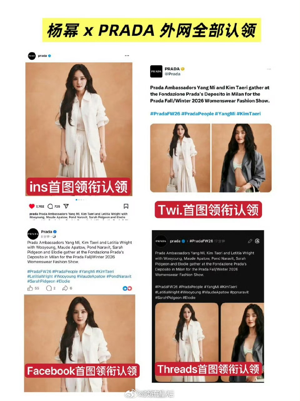 Prada全平台认领杨幂杨幂让Prada大秀在内娱的热度拉满了,这样的时尚热度女