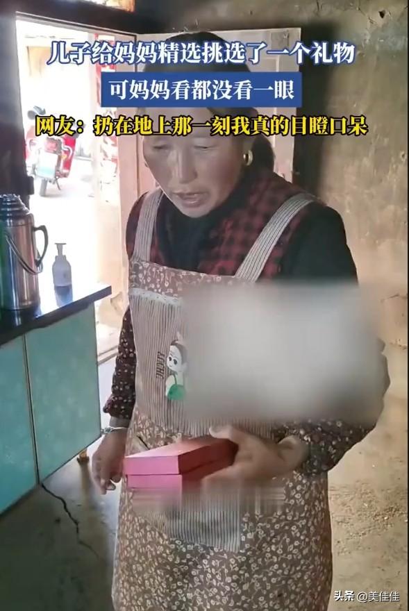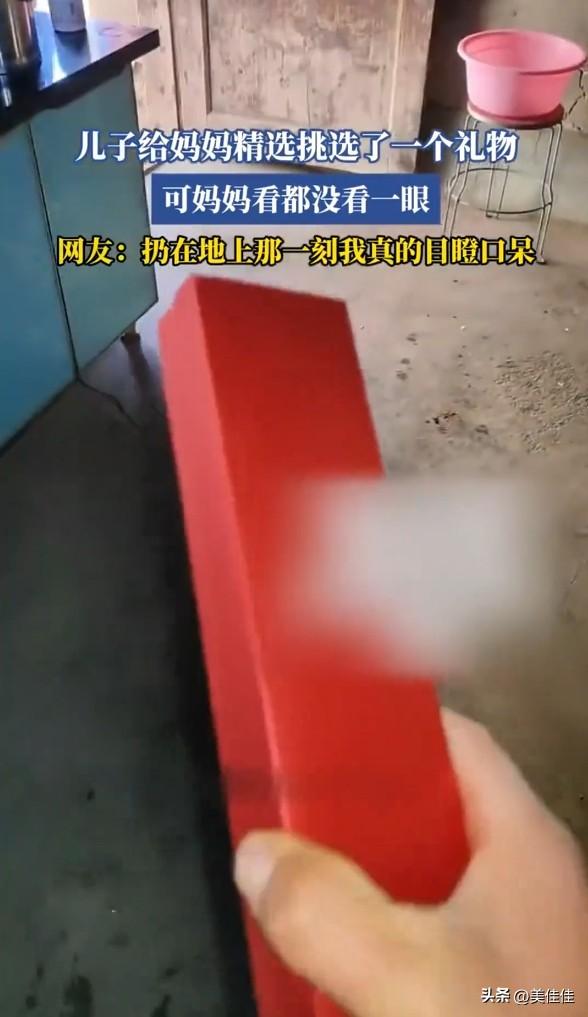 儿子给妈妈精心挑了个礼物,妈妈看了一眼盒子,抬手就扔在了地上。很多人说这位母亲做得不对,但我却不这么看。 从视频里一眼就能看出,这个家的条件很一般,甚至可以说是贫困。房间的墙皮斑驳脱落,连最基本的白墙都没有,这样的环境在现在已经很少见了。房门老旧,家具简单,处处透着日子的拮据。 在妈妈的眼里,生活从来不是精致的礼物,而是柴米油盐的算计。她不是不爱儿子,只是被生活磨得只认“实在”。在她心里,一袋能吃的大米,远比这个红盒子更能让家里踏实。她扔的不是礼物,是她半辈子都不敢奢望的“精致”,是怕儿子为了这份心意,又在别处省吃俭用。
