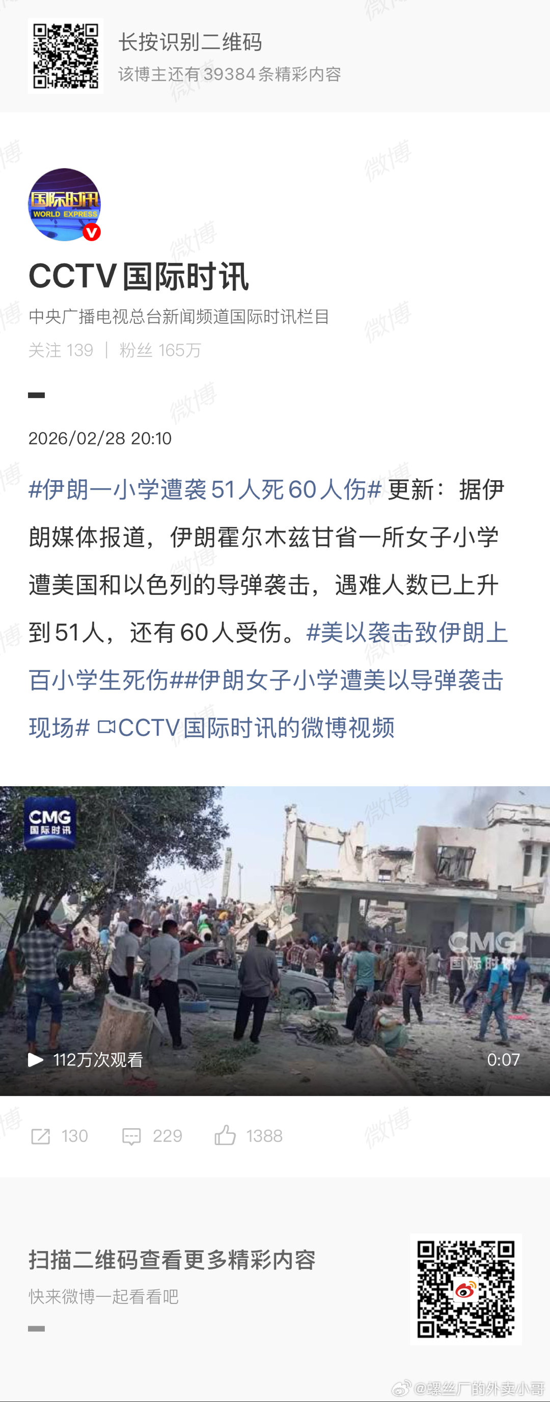 据伊朗媒体报道,伊朗霍尔木兹甘省一所女子小学遭美国和以色列的导弹袭击,遇难人数已上升到51人,还有60人受伤。