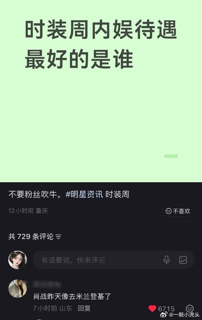 网友评价米兰时装周待遇最好的明星。“肖战昨天像去米兰登基了”