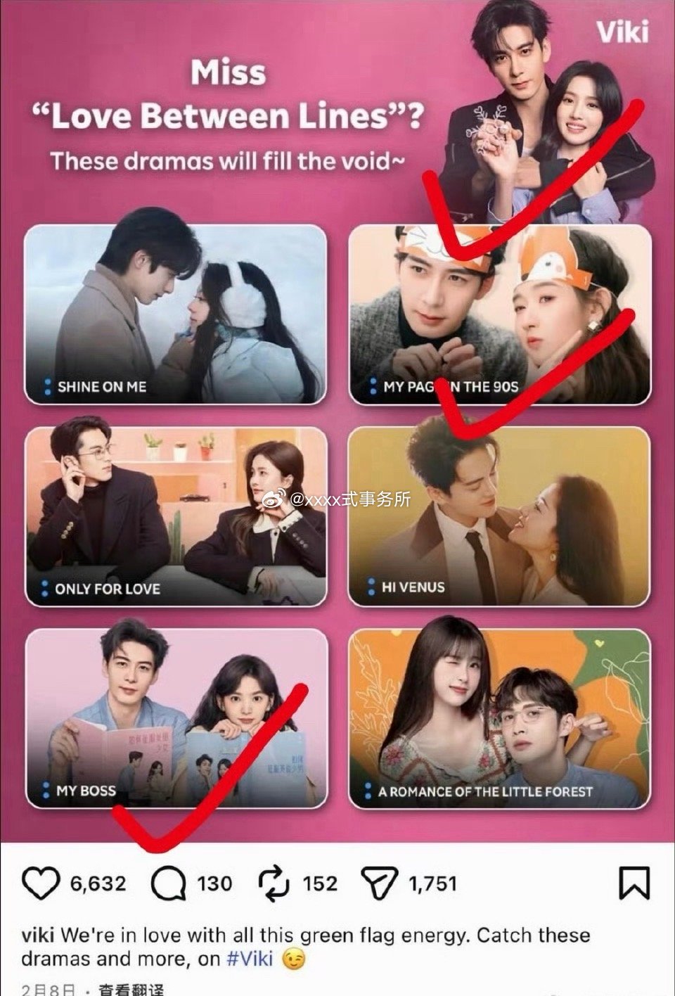 Rakuten Viki(北美最大亚洲影视综在线平台)在其官方账号(其他平台)上