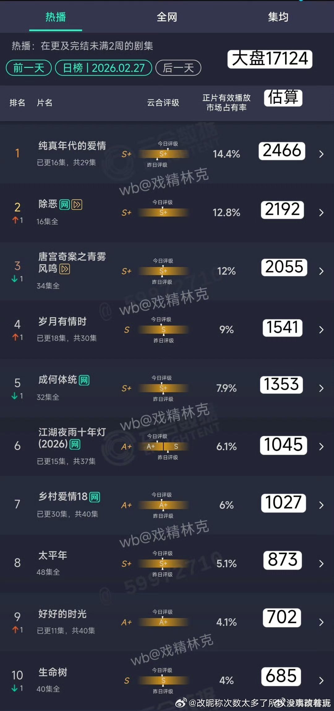 江湖古偶双平台中午开播首日播放量600,播15集了日播1000周翊然包上恩寒得吓人