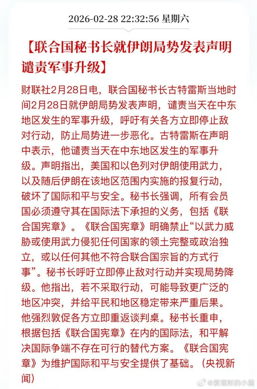 以色列宣布袭击伊朗联合国秘书长就伊朗局势发表声明谴责军事升级。