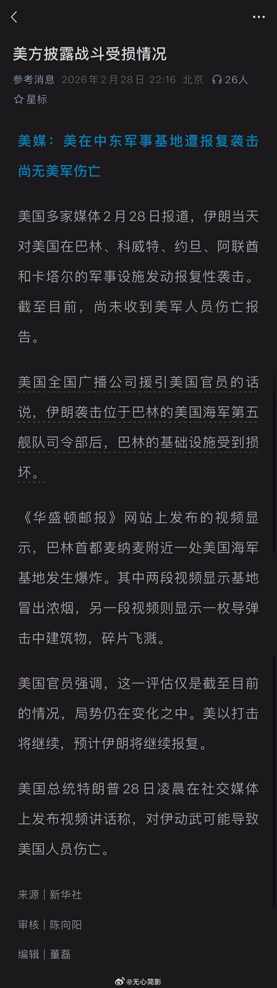朋友说刚才看到消息说巴林有美军被炸死了,这下性质全变了。川普马上要发全国紧急
